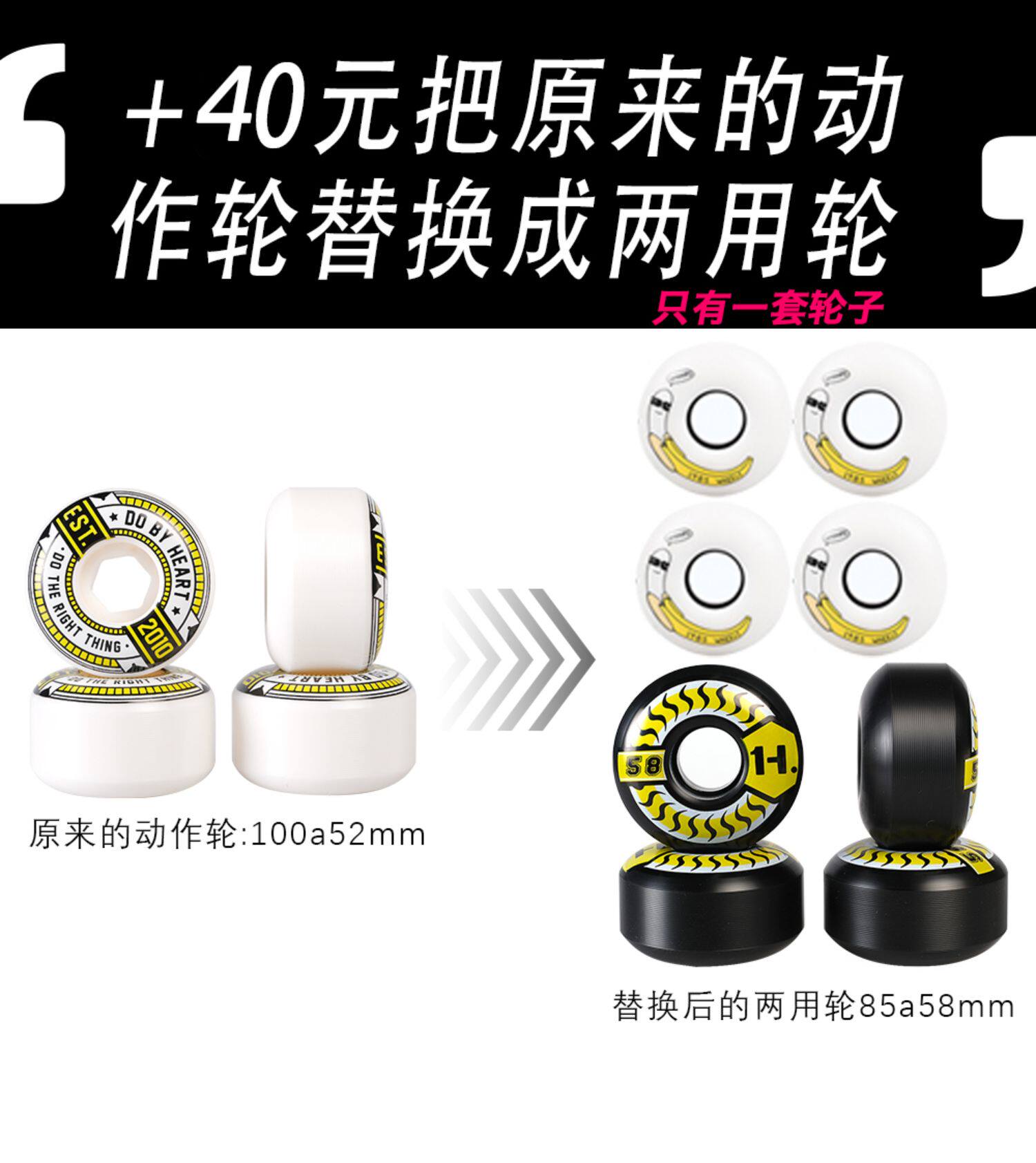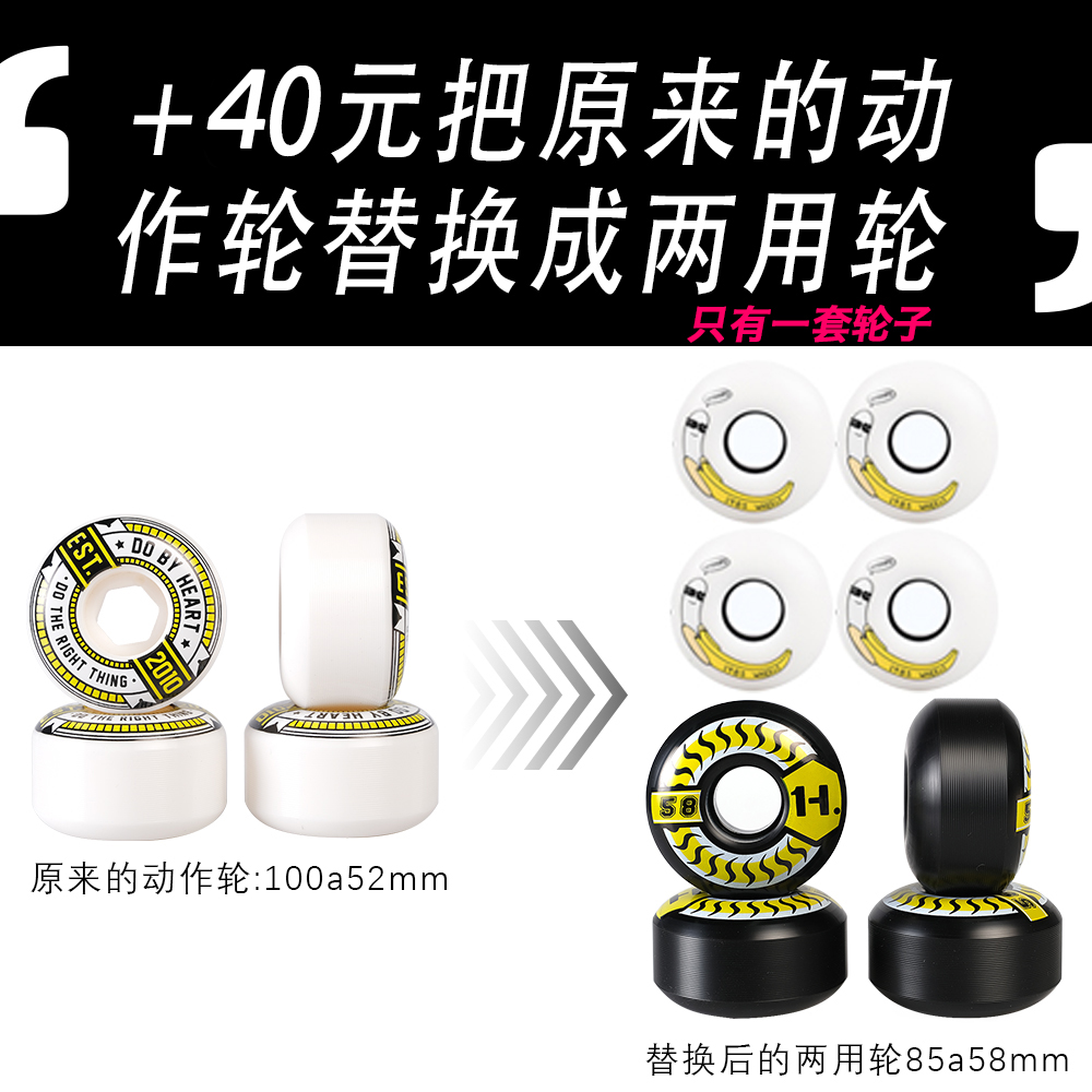 | Цвет: | Обновите черное колесо двойного использования, Обновление 56 -мм уличного колеса., Обновить банановое двойное колесо, Отправить подшипники DBH Briching Street Wheel +1985 |
