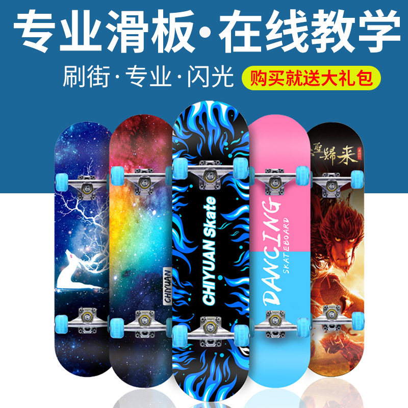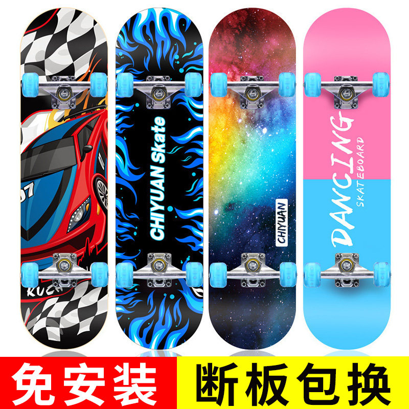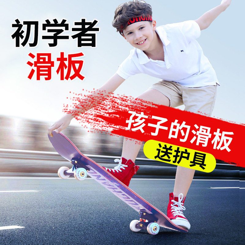Профессиональный детский скейтборд на четырех колесах для начинающих, профессиональное защитное снаряжение для взрослых для мальчиков с двумя изогнутыми концами, 6-12 лет