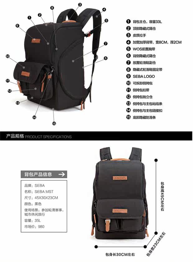 Новый подлинный Seba MST Roller Skating Shoes Professional рюкзак, модель сборной на роликовых коньках на роликах, большие возможности, высокое качество