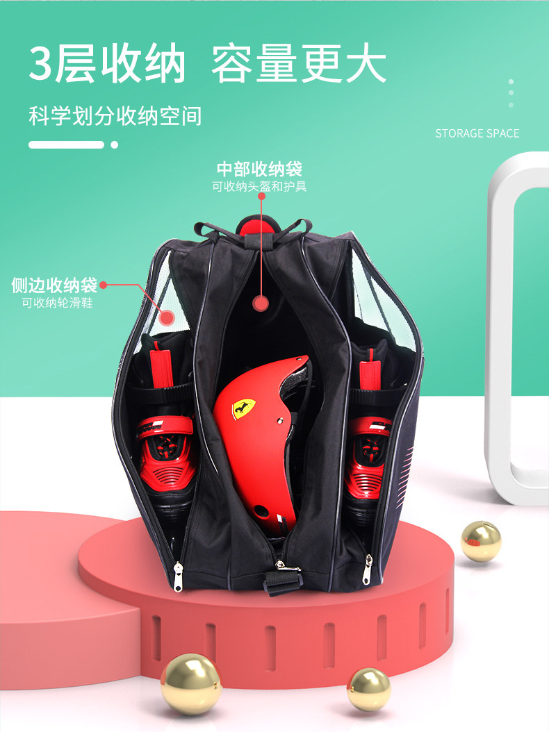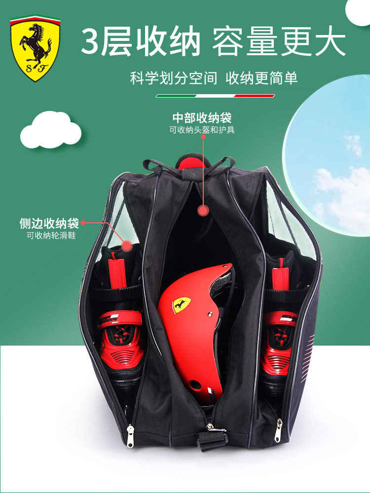 Ferrari, детские коньки, рюкзак для уличного катания, вместительная и большая сумка, сумка-органайзер, 15 года, цвет