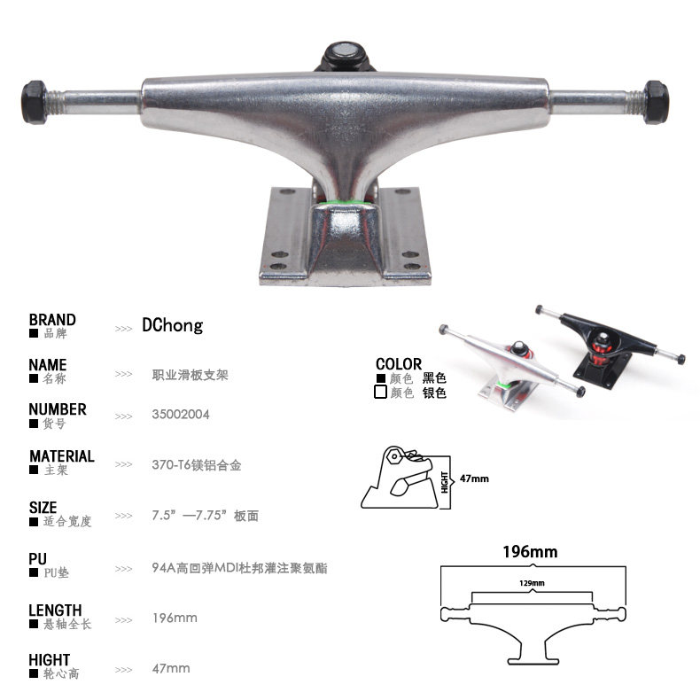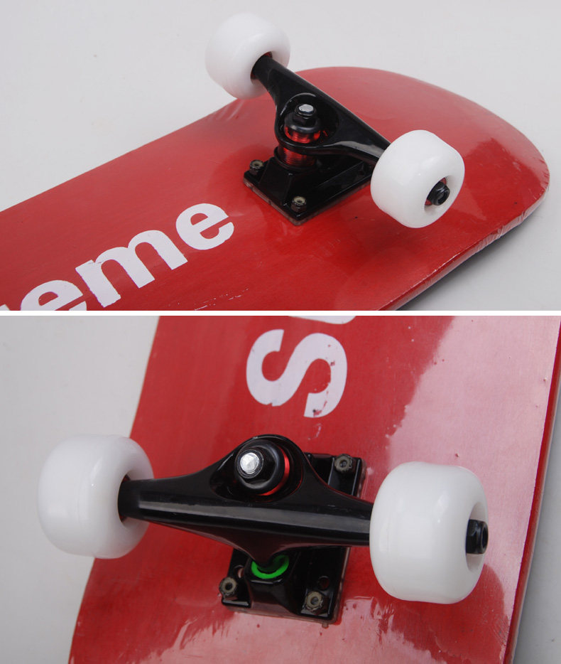 Это 5 -дюймовый скейтборд (шириной около 20 см).Первое поколение кронштейнов чаек (форма, как крылья), тоньше и короче.