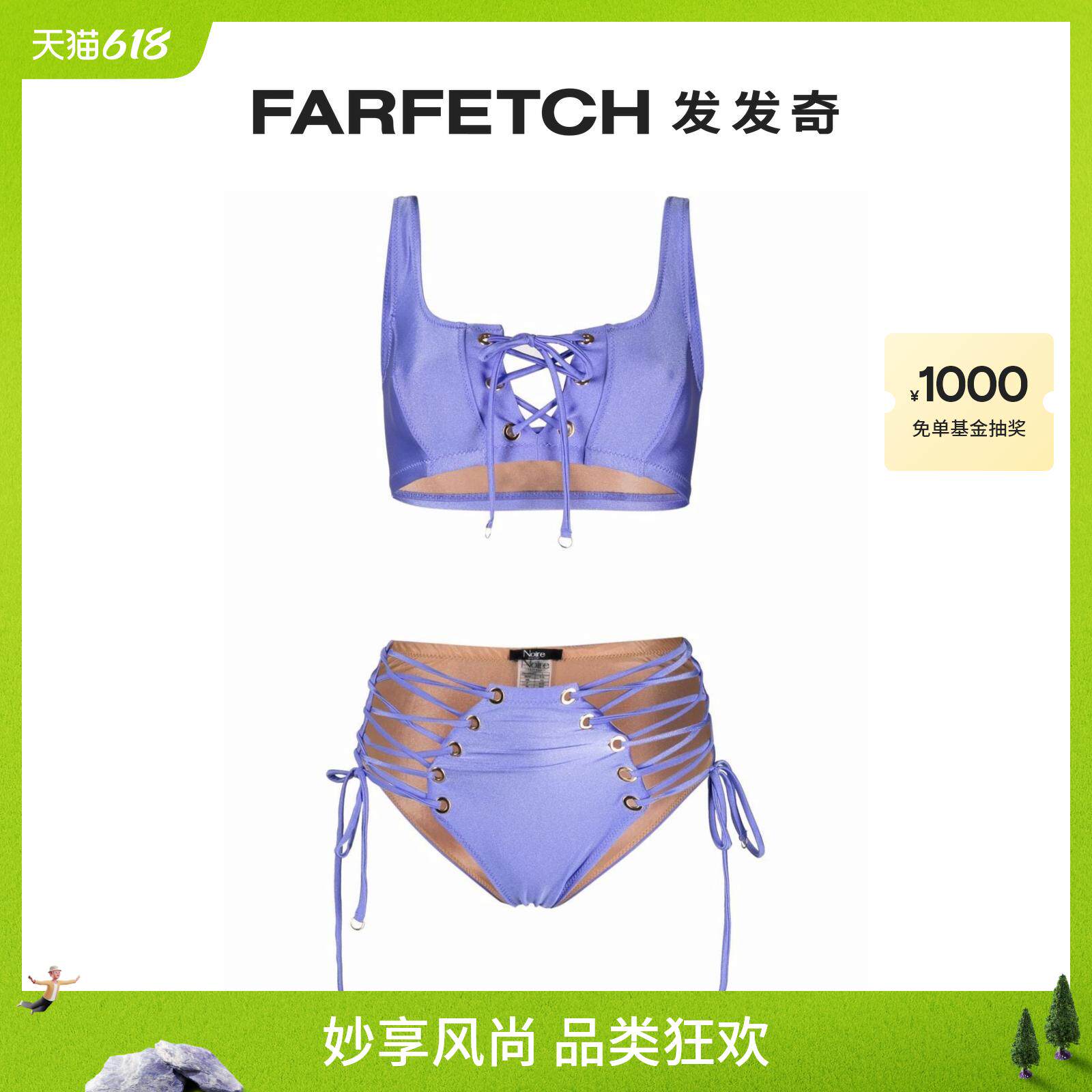 Noire Swimwear Ladies зашнуруют два бикини -набор бикини.