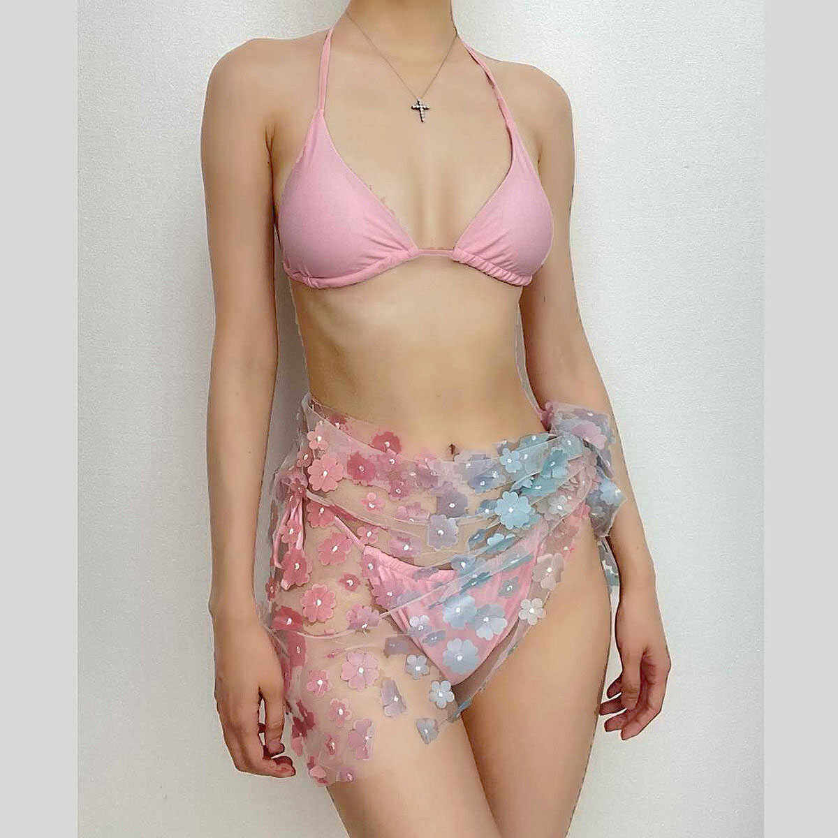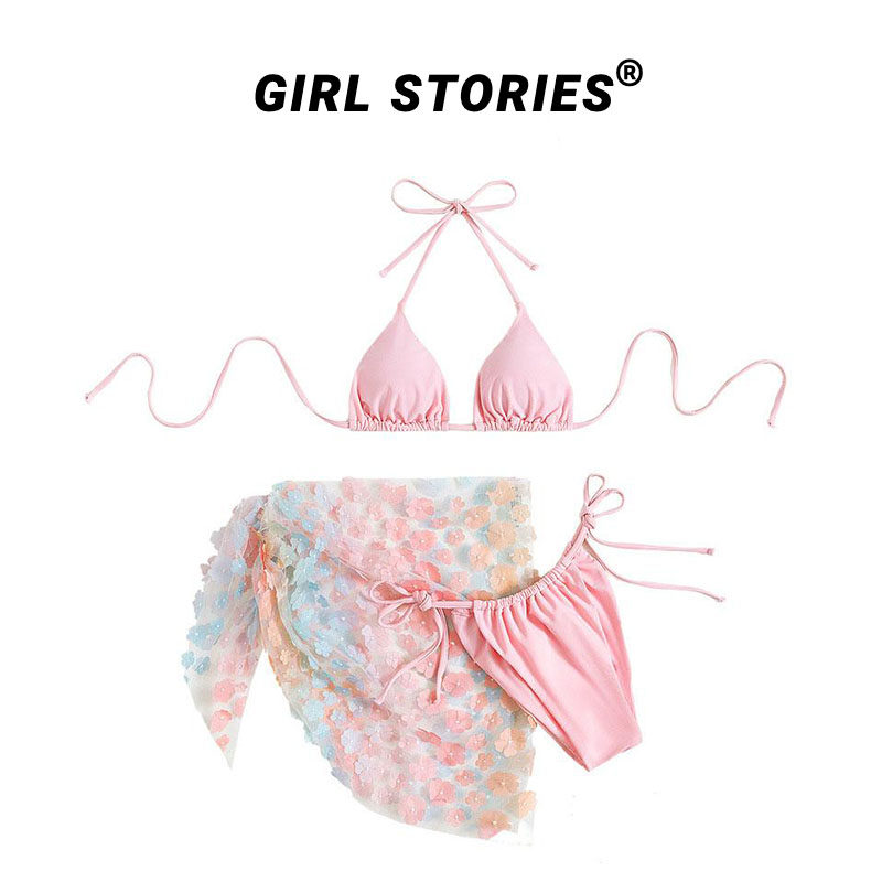 Girl Stories Бабочка Розовое трехточечное бикини из трех частей Купальник для фото отпуска Европейский и американский сексуальный купальник