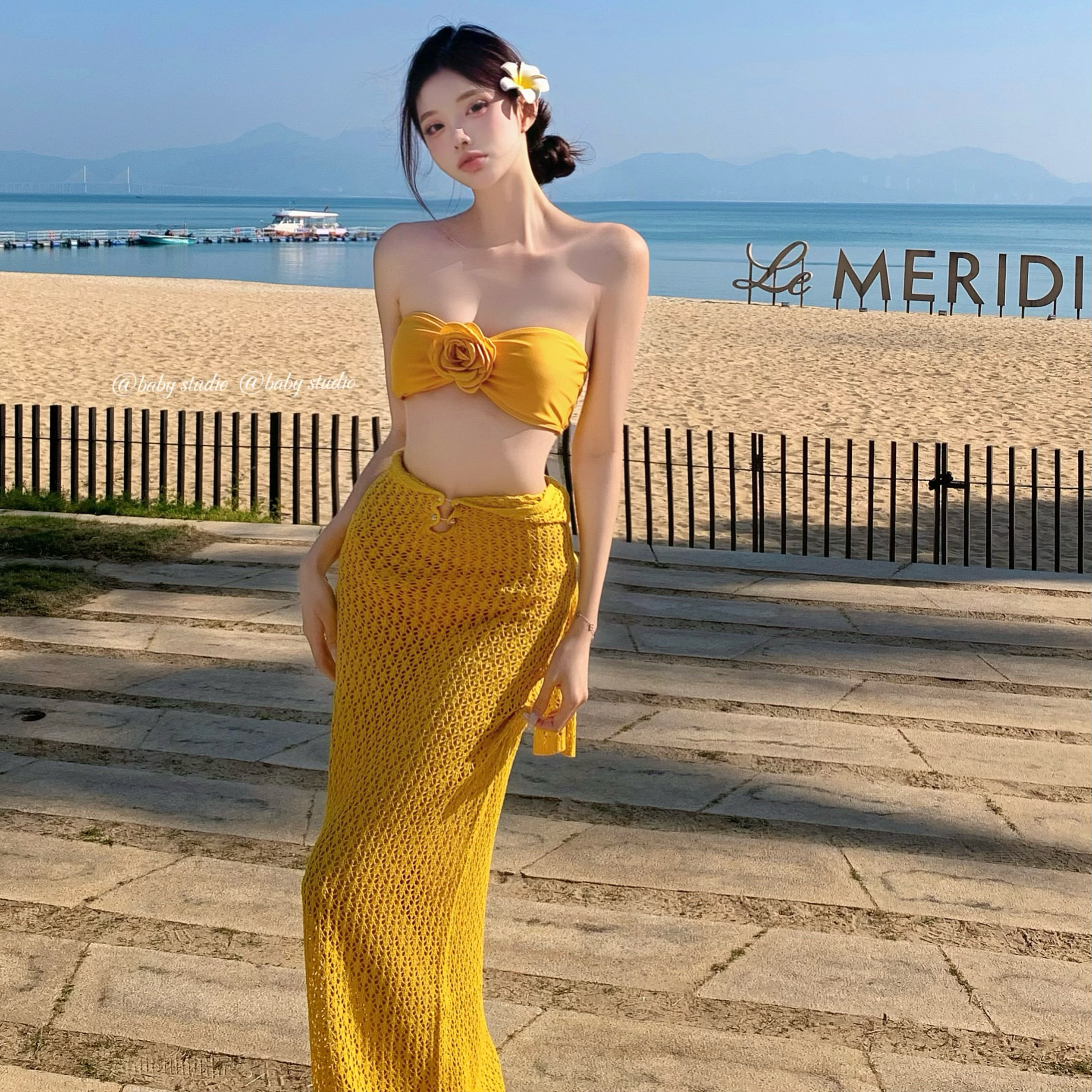 Купальник, рыжий топ с чашечками, сексуальная длинная юбка, горный чай