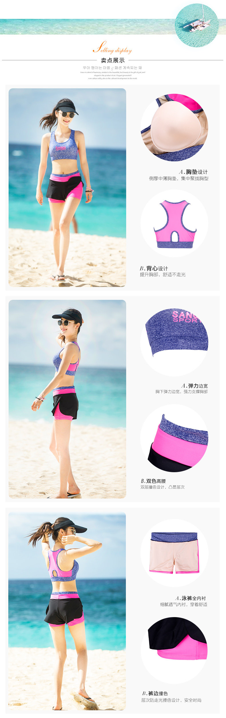 三奇 Раздельный спортивный купальник для школьников и студентов, большой размер