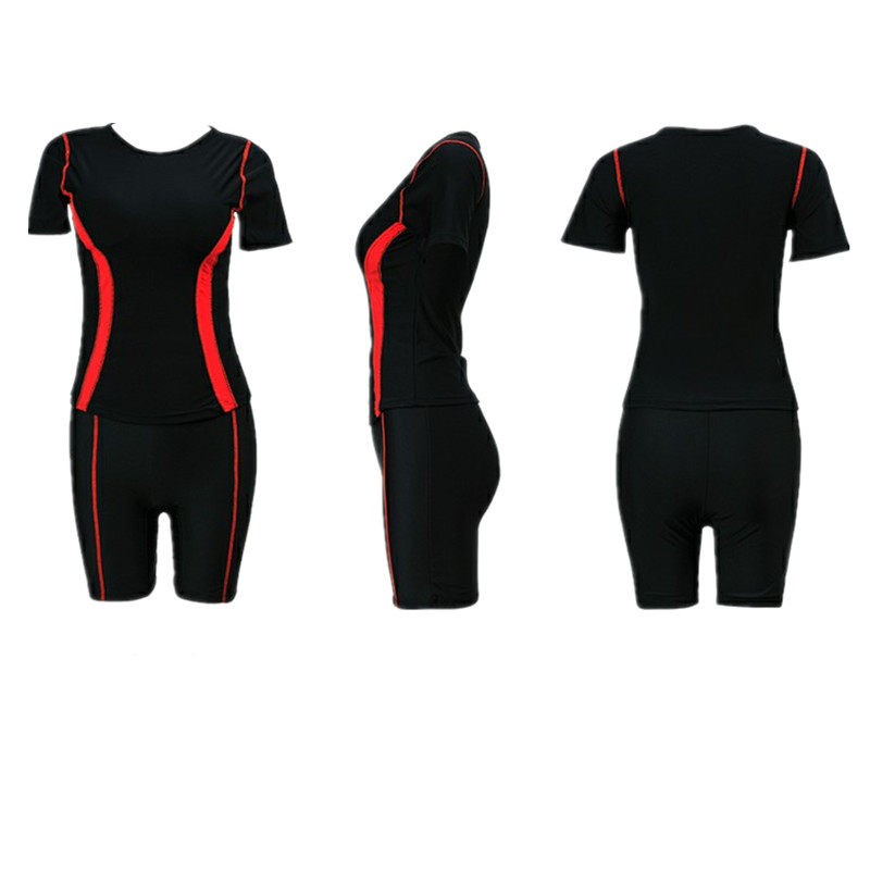 Раздельный купальник, спортивные штаны для школьников, высокая талия, короткий рукав, по фигуре