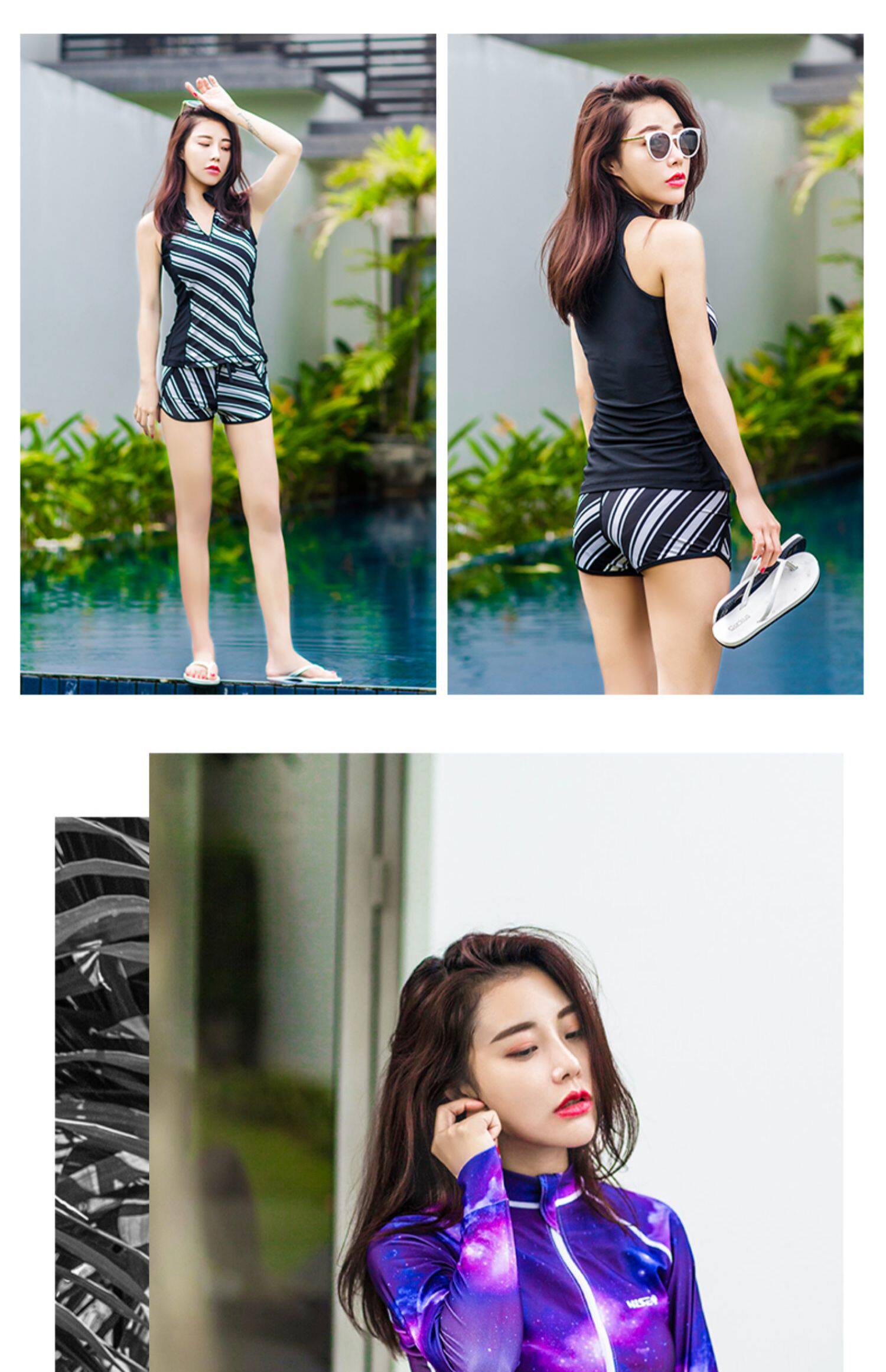Купальник, лонгслив, быстросохнущие шорты, раздельный комплект для плавания, защита от солнца