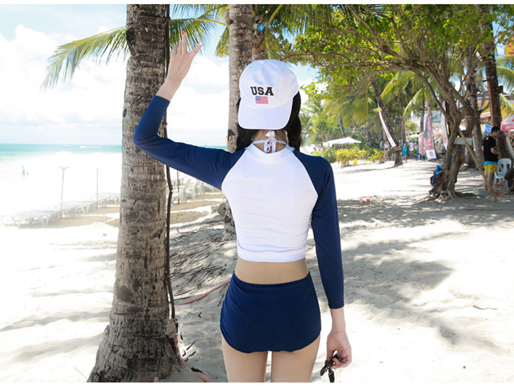 Спортивный лонгслив, раздельный купальник, защита от солнца, высокая талия
