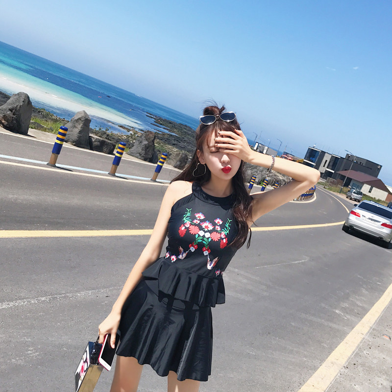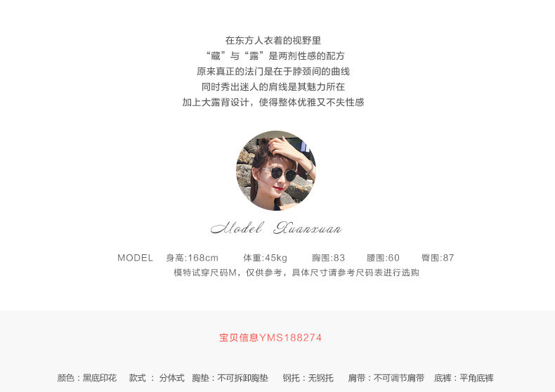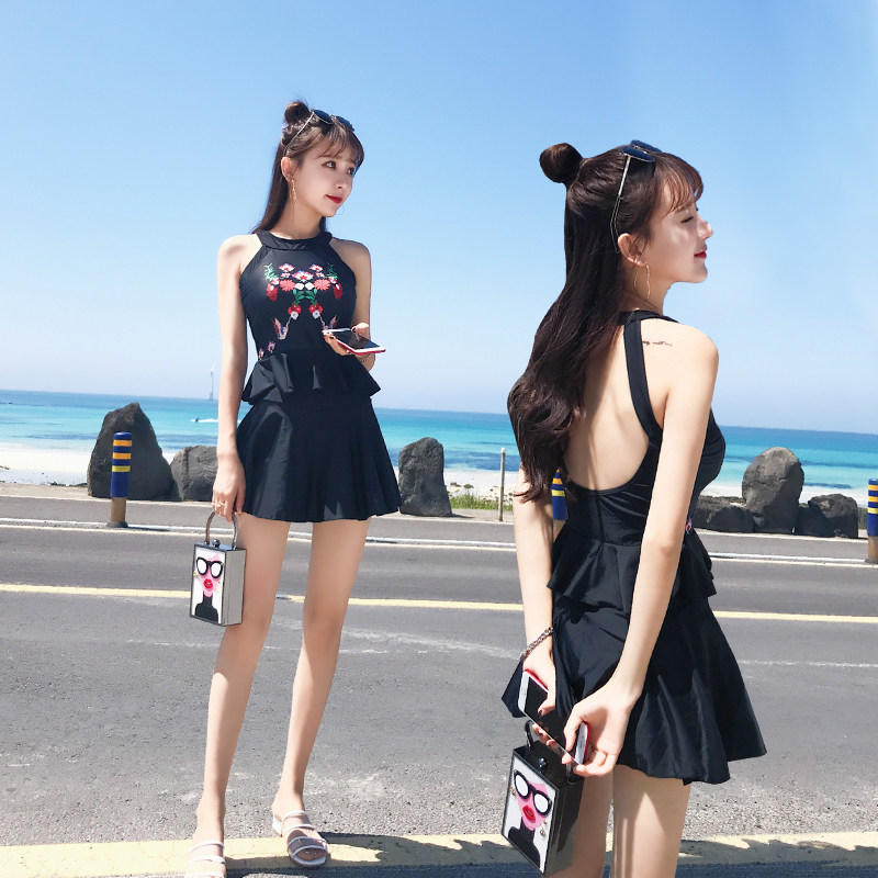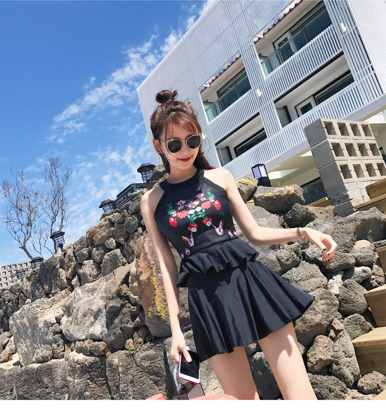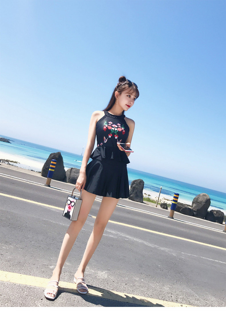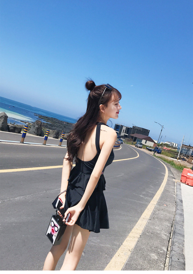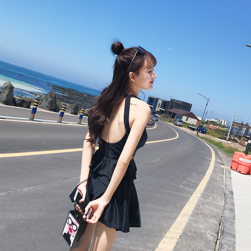 亦美珊 Раздельный купальник, черная юбка, штаны, с открытой спиной
