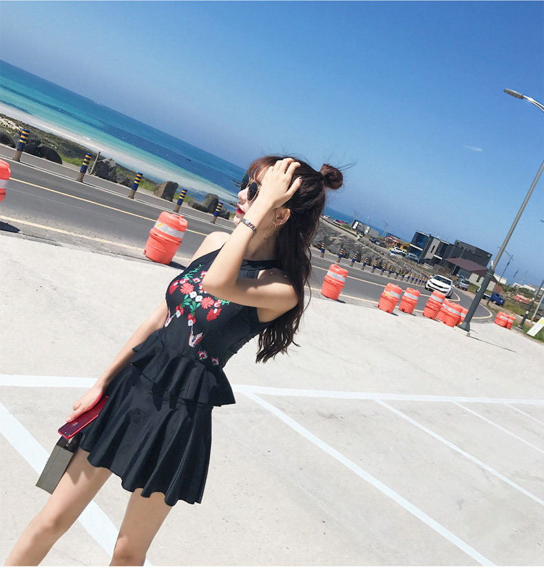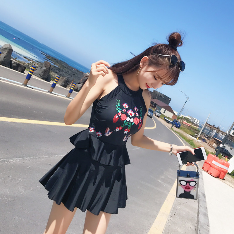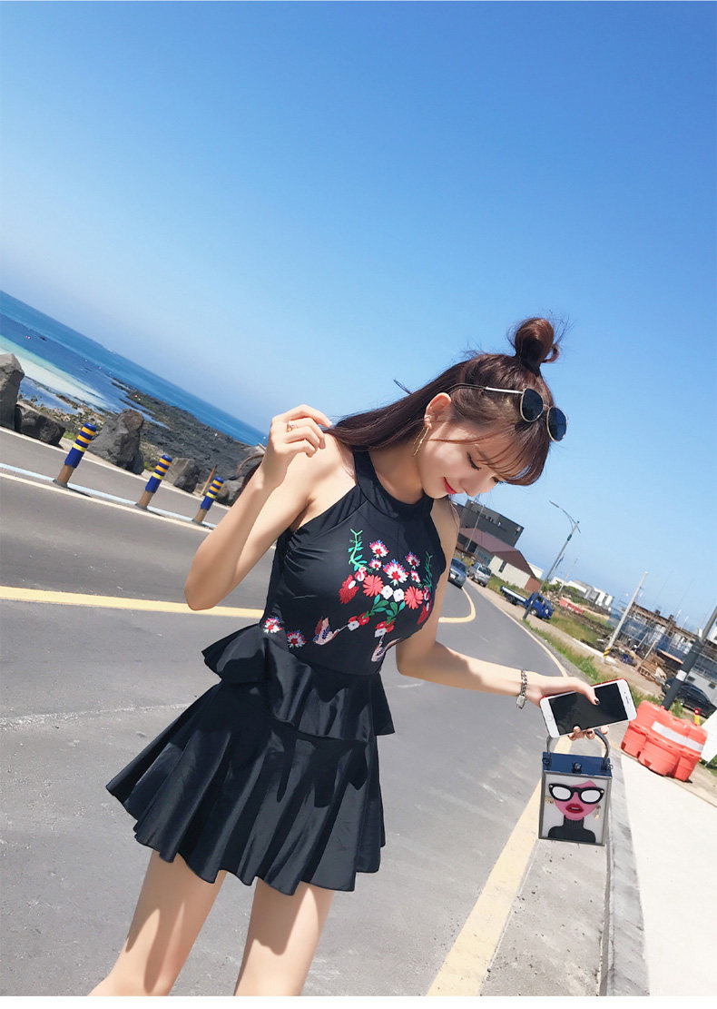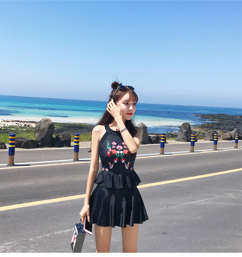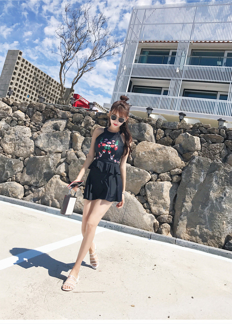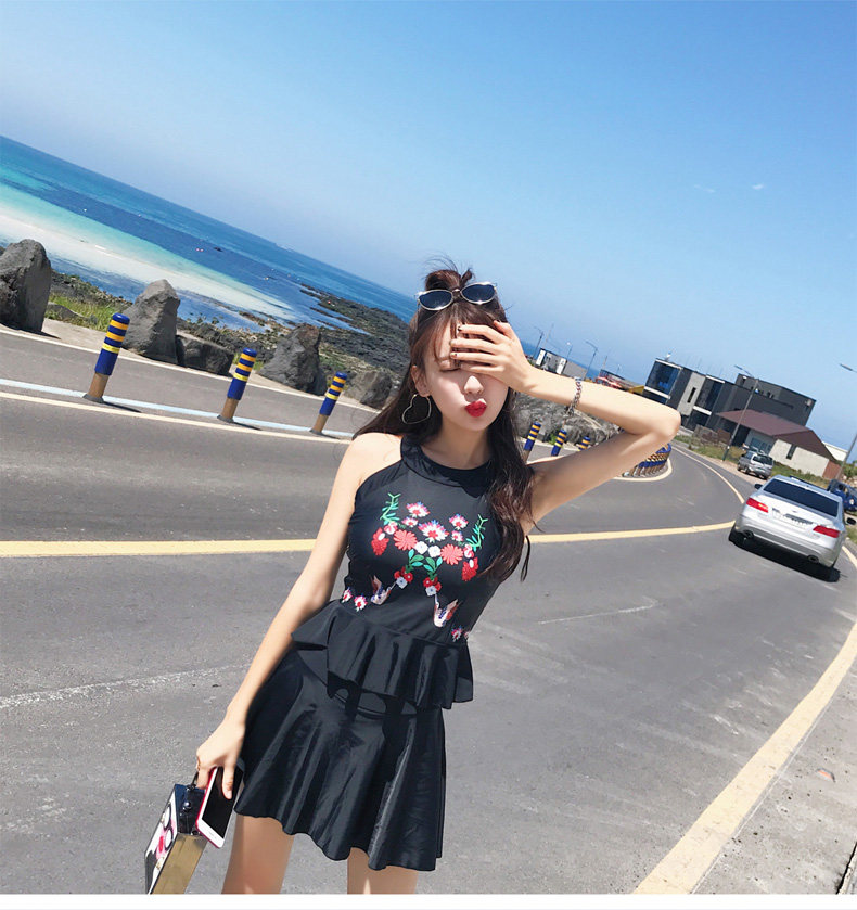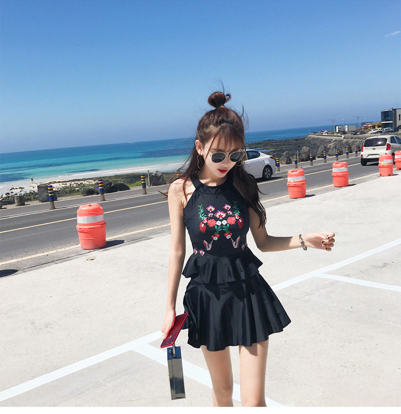 亦美珊 Раздельный купальник, черная юбка, штаны, с открытой спиной