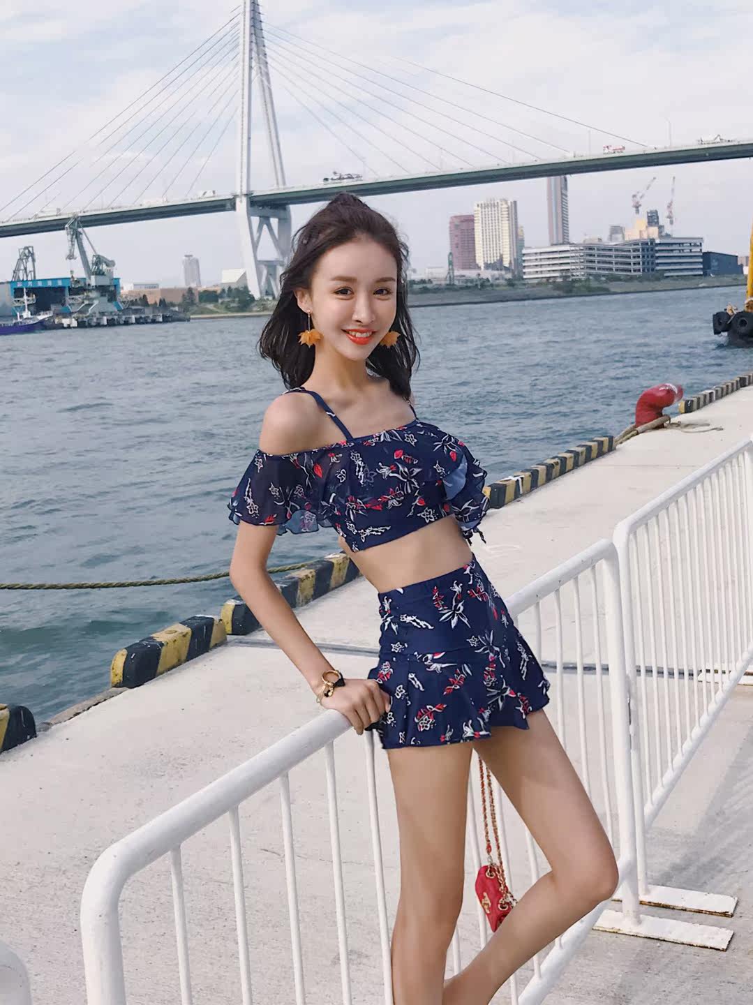 Сексуальный купальник, штаны для школьников и студентов, бюстгальтер пуш-ап, открытые плечи, в стиле Шанель