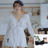 Купальник, комплект, сексуальный белый лонгслив, коллекция 2021, 3 предмета