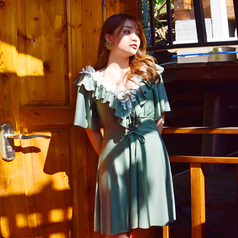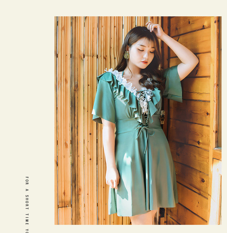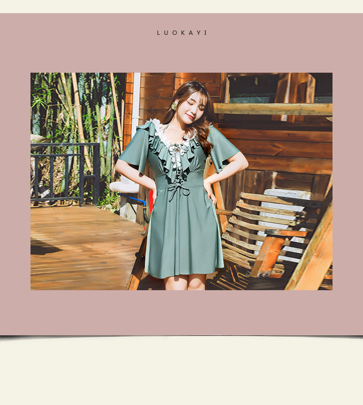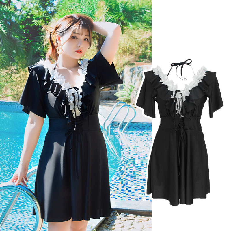 Назальный купальник большого размера женский жир MM200 Джин Большой грудь подключен юбку -