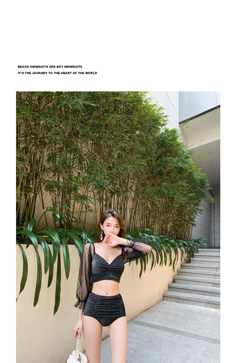 亦美珊 Черный лонгслив, купальник, раздельный термометр для школьников и студентов, защита от солнца, коллекция 2021