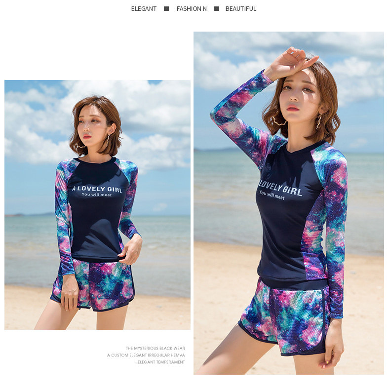 Купальник, раздельный лонгслив, спортивный комплект для школьников, 2020, по фигуре, большой размер