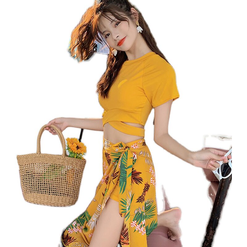 Раздельный купальник, сексуальный комплект, в корейском стиле, 3 предмета, по фигуре, большой размер