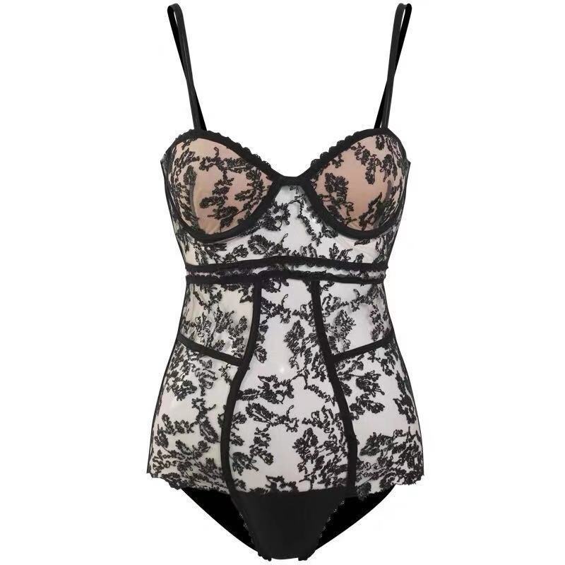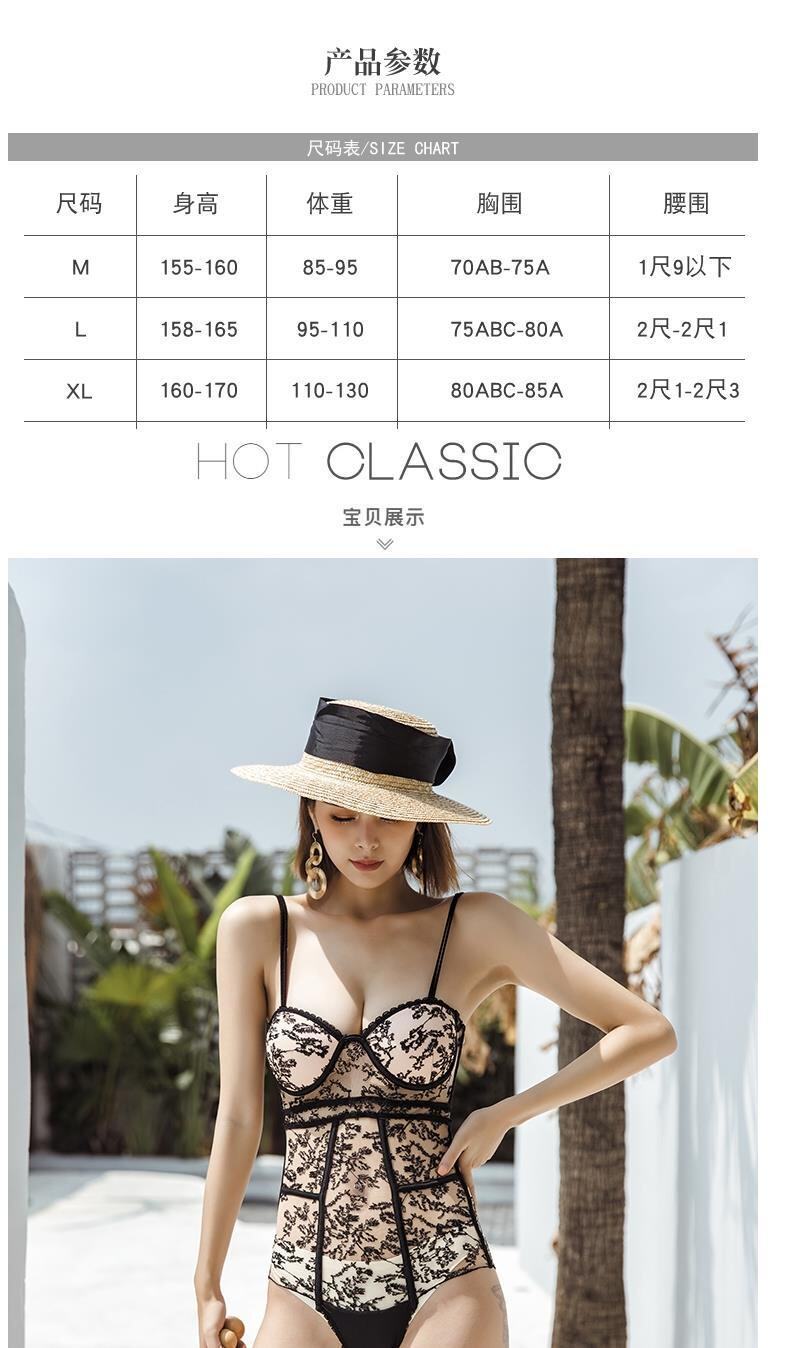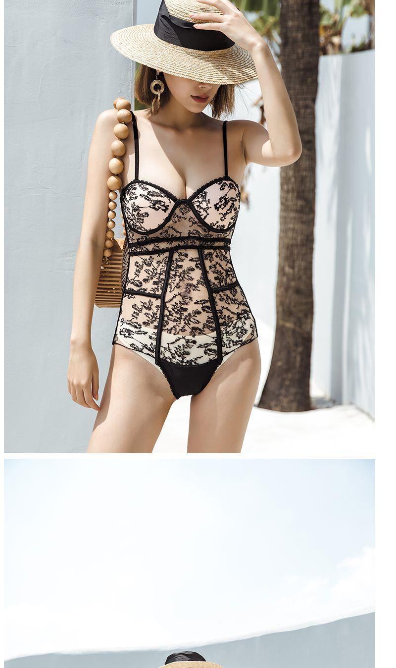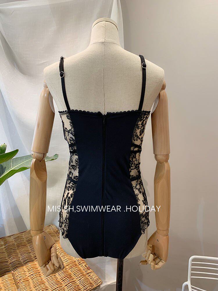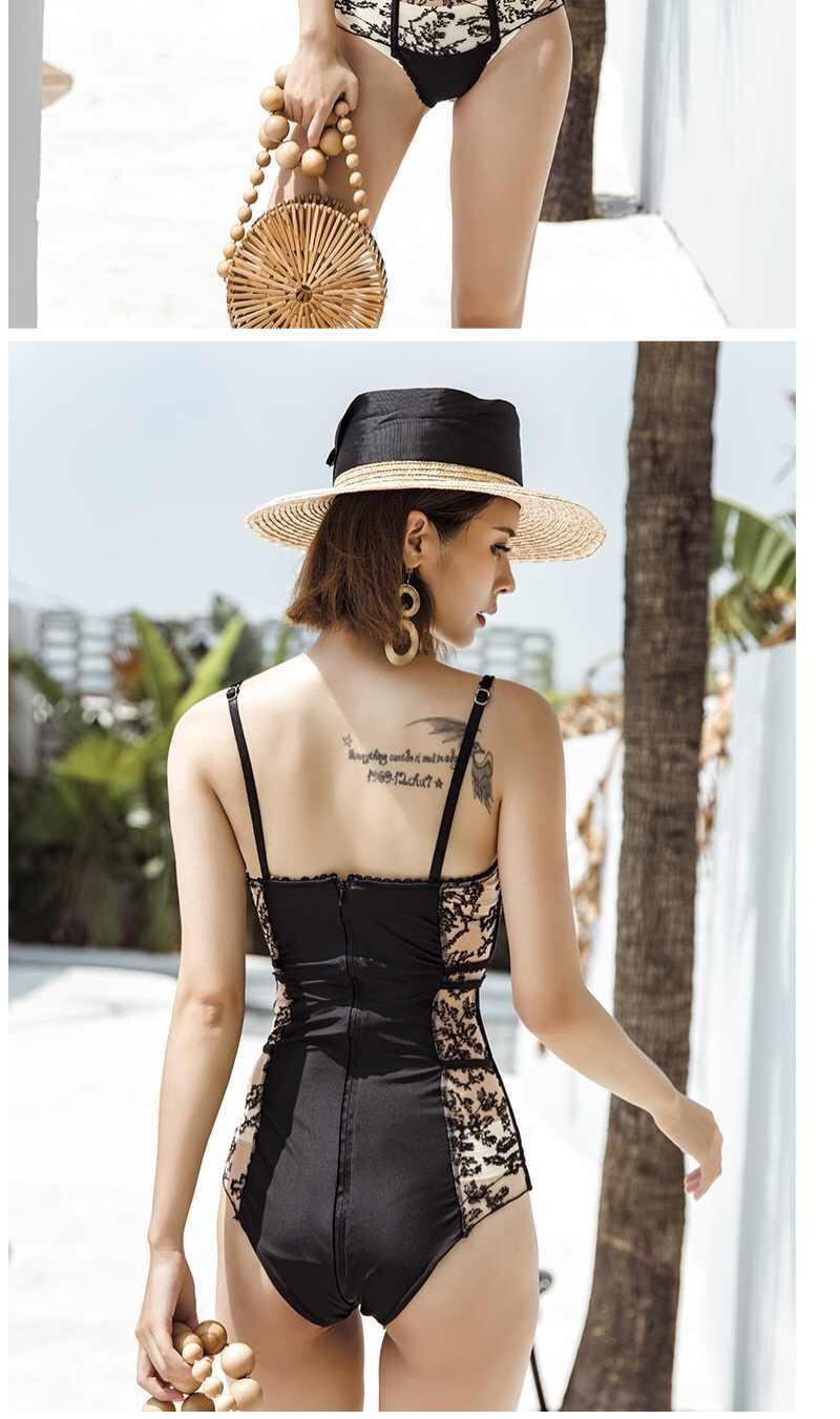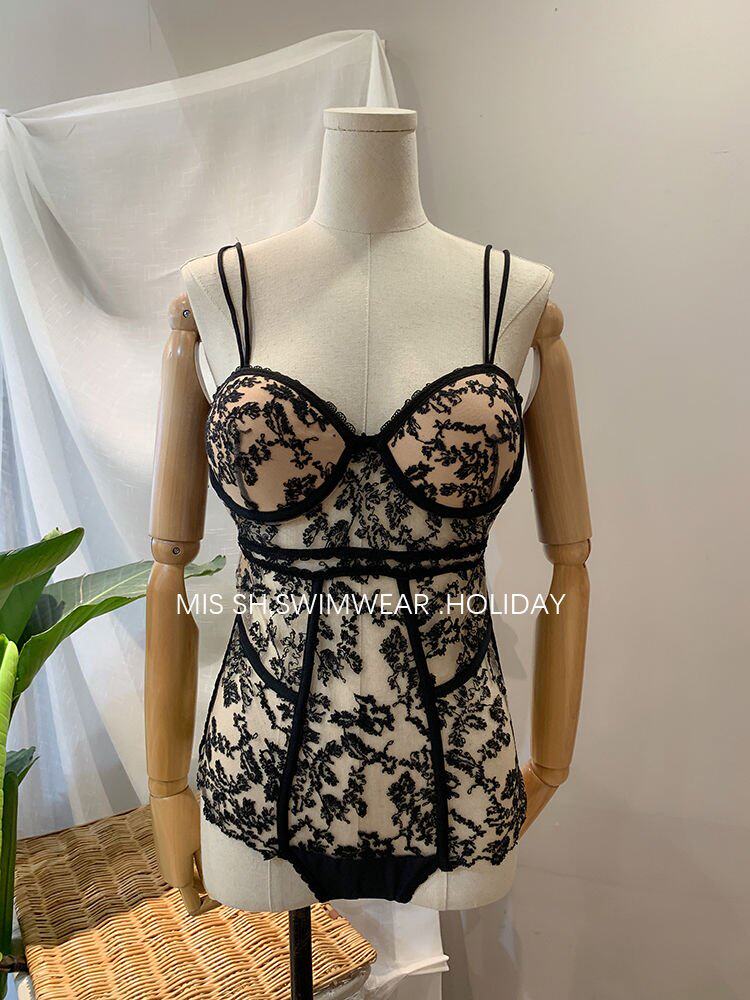Кружевной сексуальный поддерживающий черный купальник, облегающий крой, с вышивкой