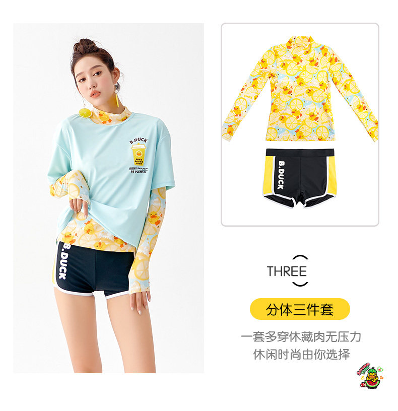 B.Duck, купальник, раздельный комплект, коллекция 2023, 3 предмета, изысканный стиль, по фигуре, защита от солнца