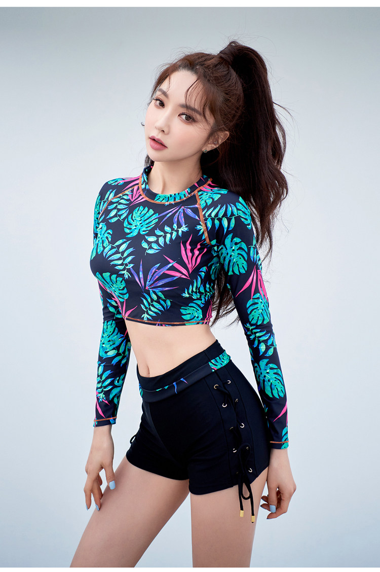 Купальник, раздельный лонгслив для школьников и студентов, коллекция 2022, высокая талия, защита от солнца