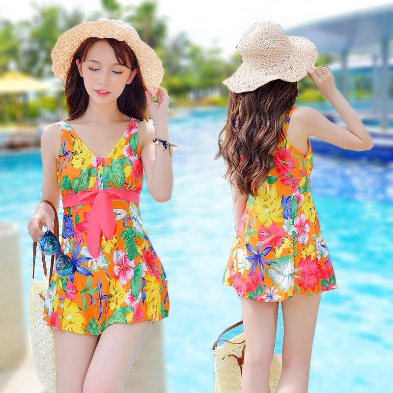 Fat Girl Swimsuit Женский стройный вид + размер купальник консервативная мама большая грудь цельное платье спа-купальник