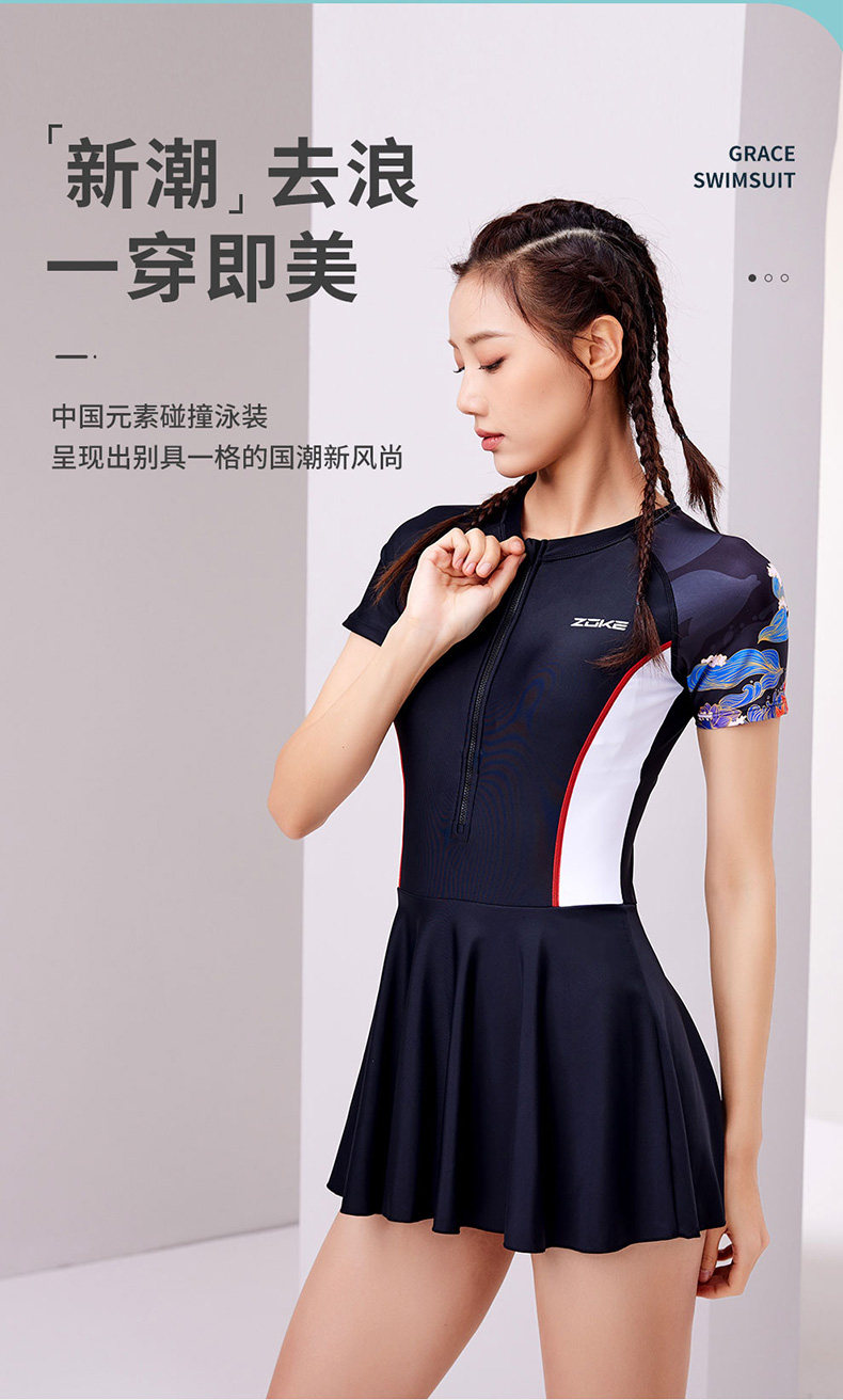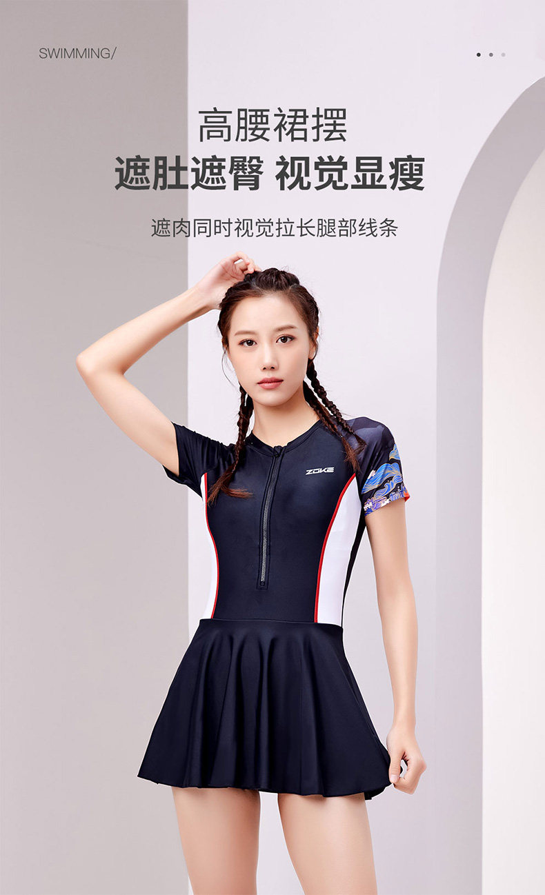 Г -жа Чжоук -купальник Профессиональный женский угол Zoke Slim Swimsuit Conservative, покрывающая гоночные виды гонок в животе.
