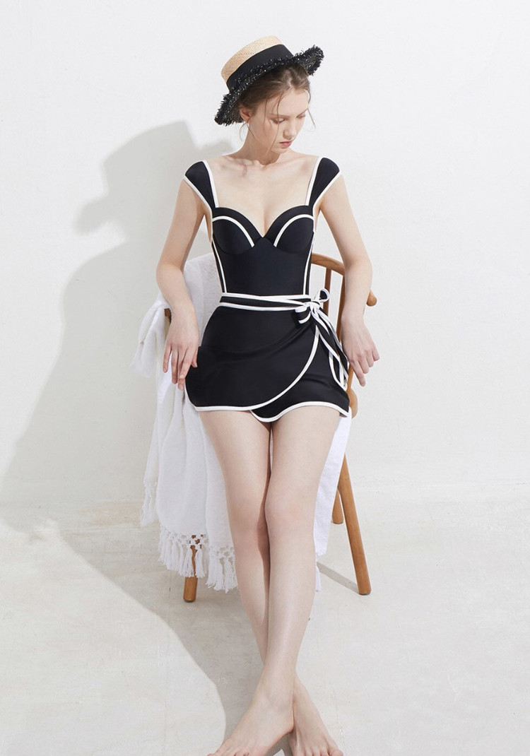 Черная юбка, комплект, купальник, бюстгальтер пуш-ап, в корейском стиле