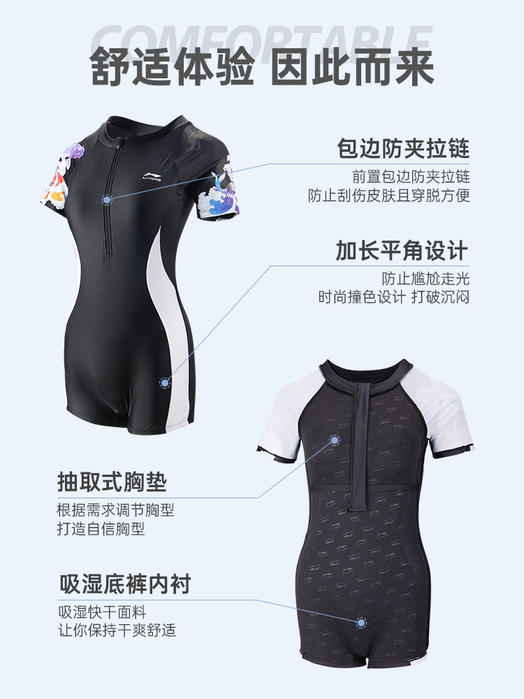 Li Ning, купальник, черное раздельное боди для плавания, короткий рукав