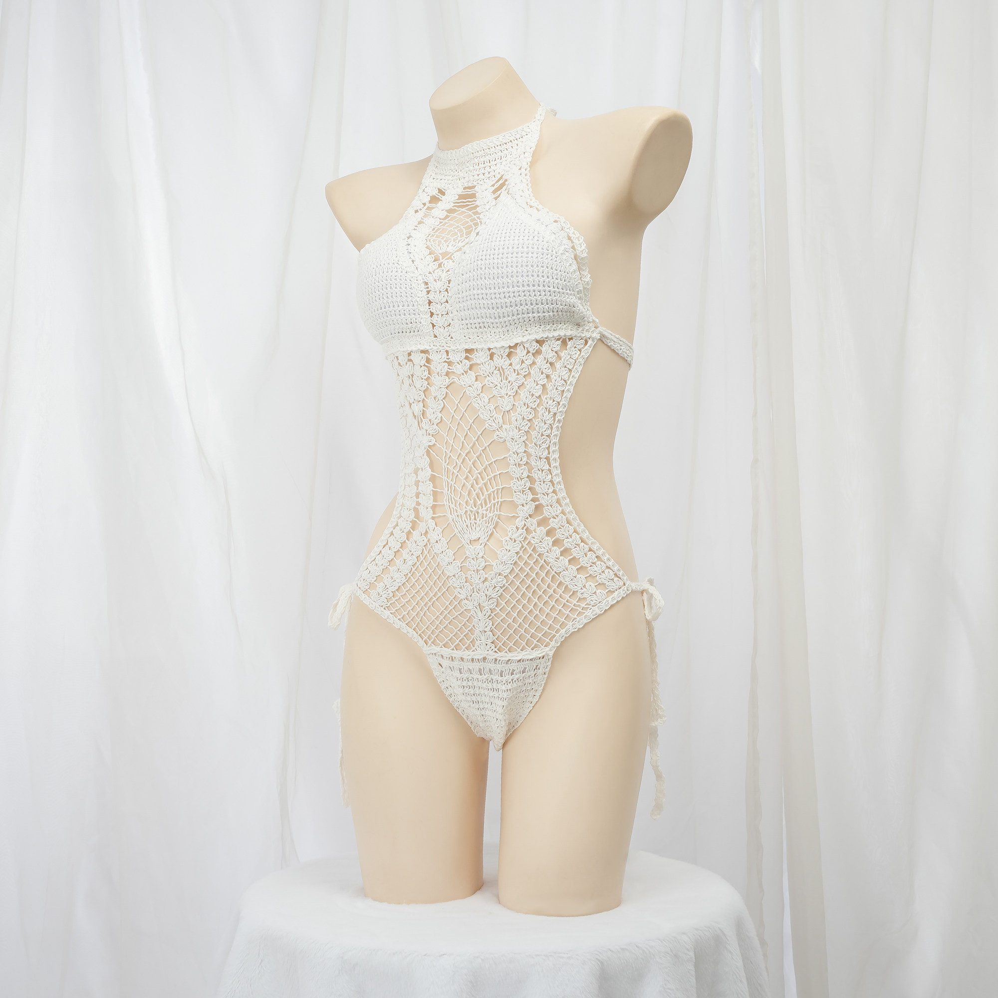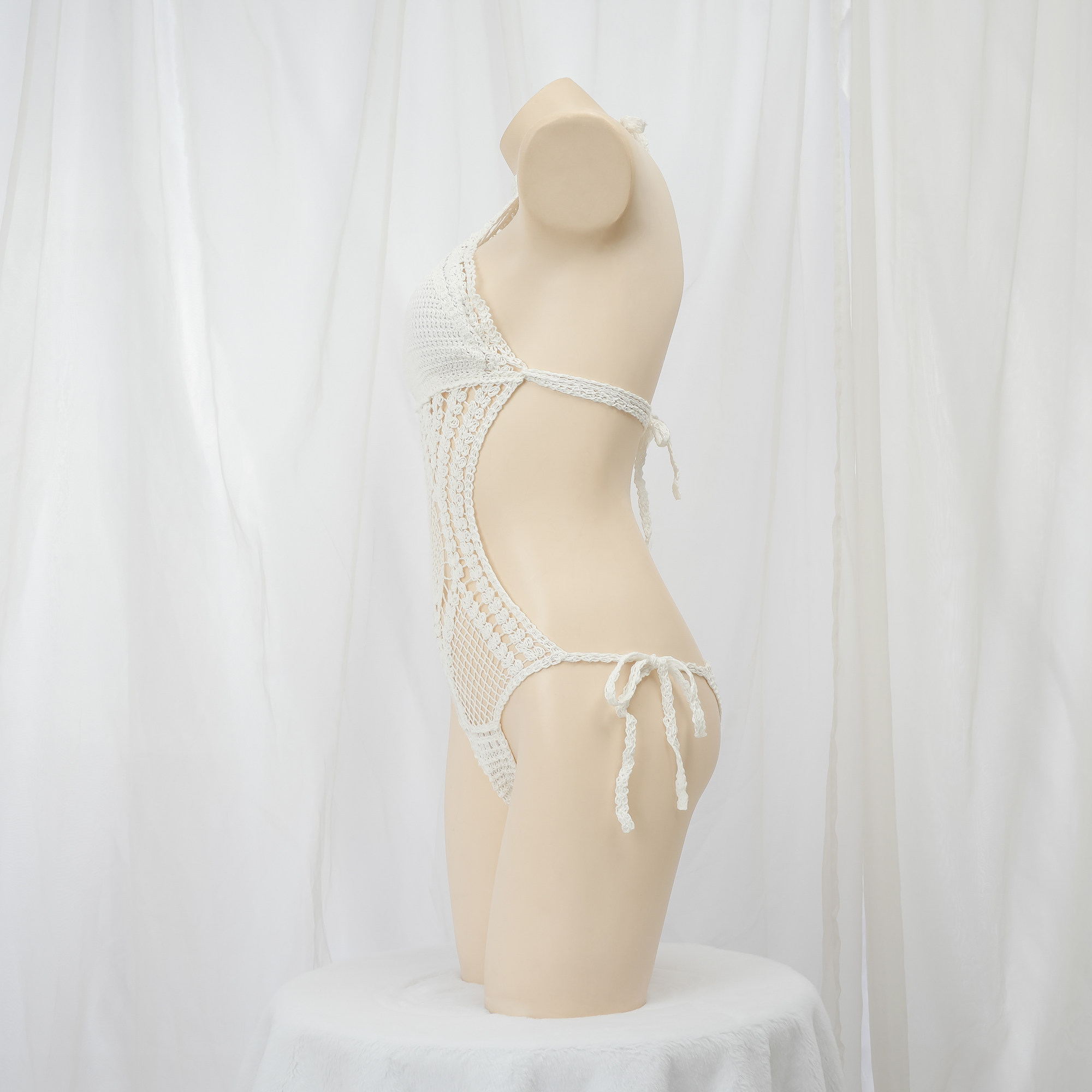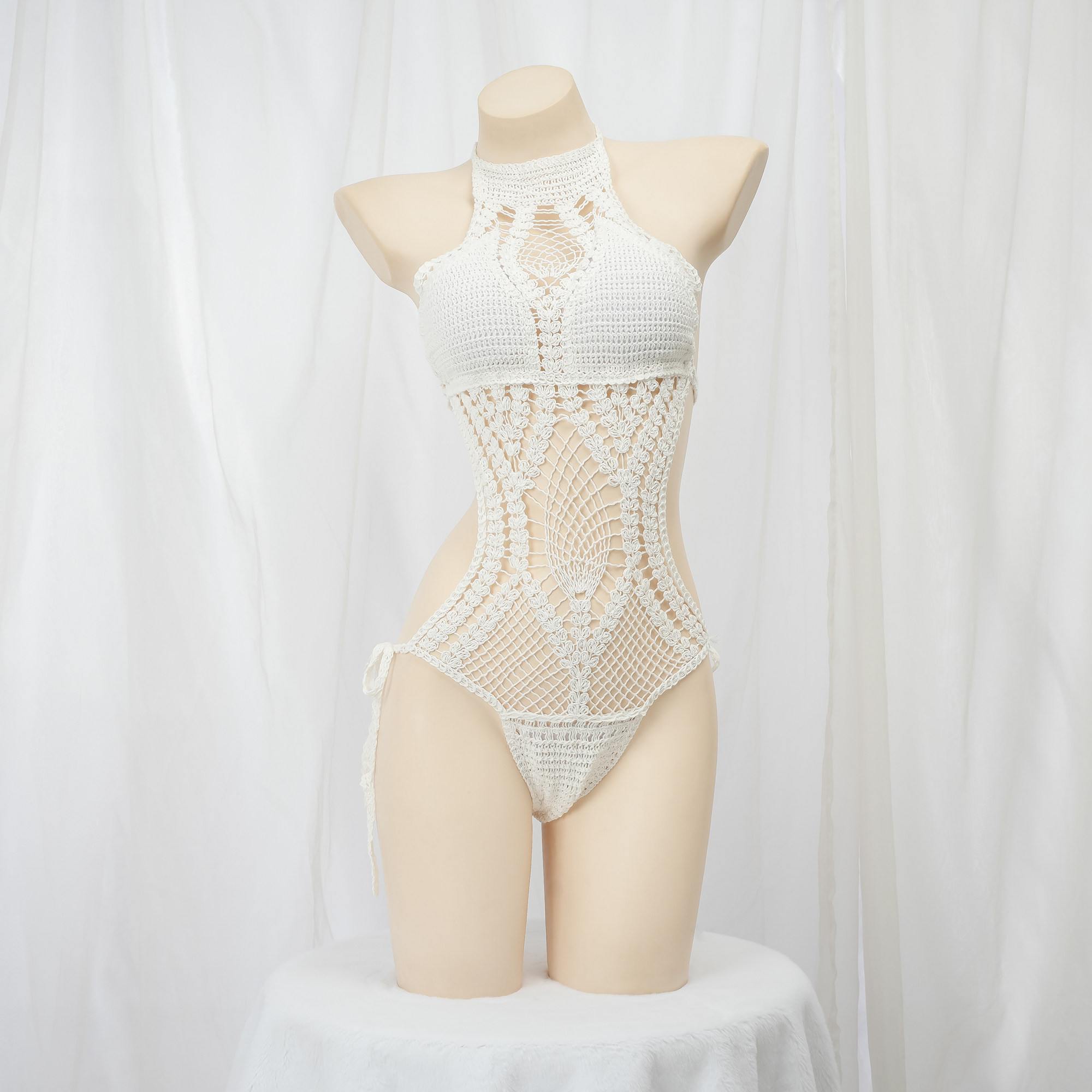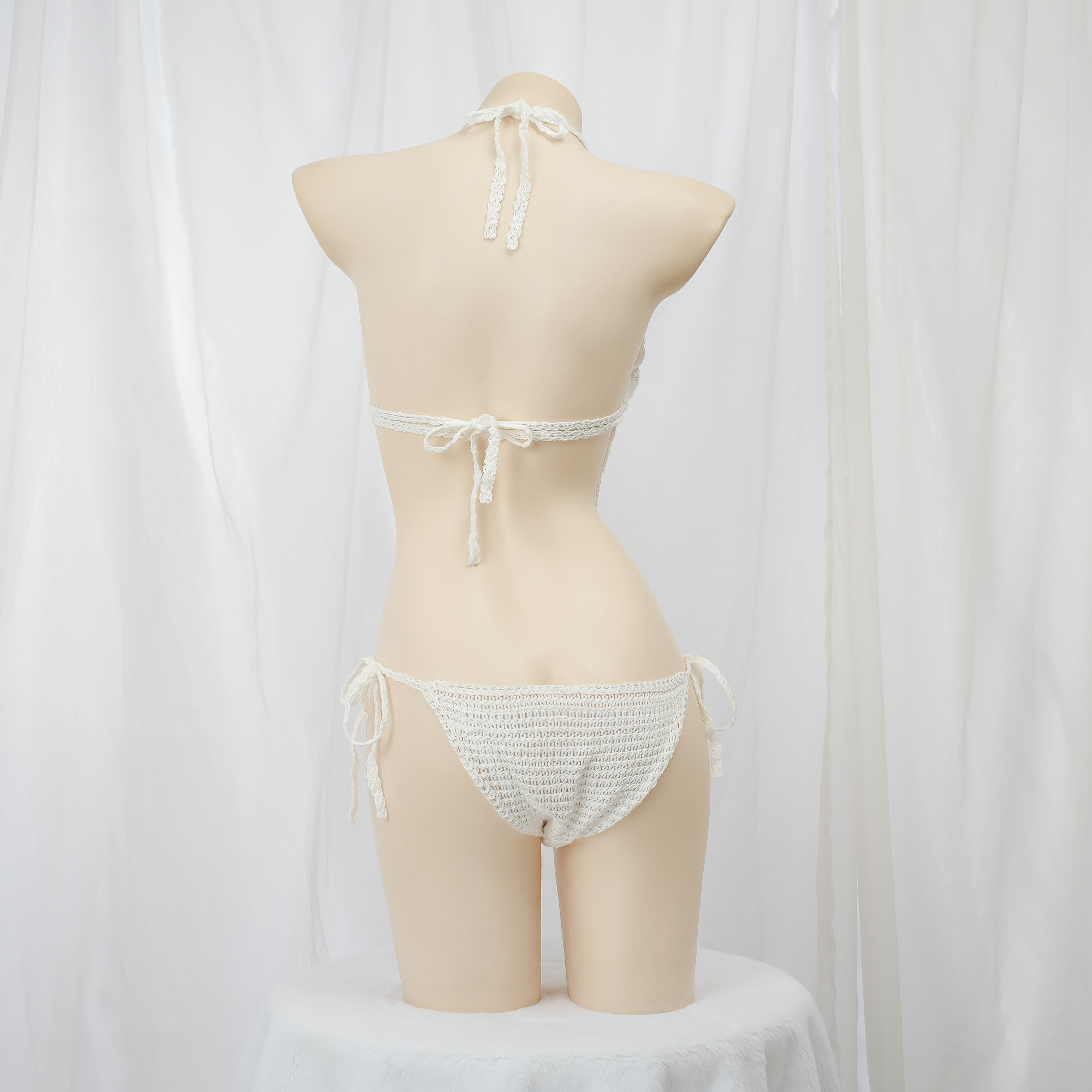 Белый ремень, купальник ручной работы, трикотажный крючок для вязания, топ с чашечками