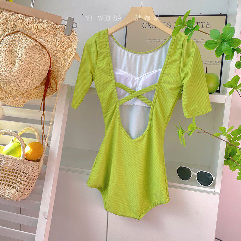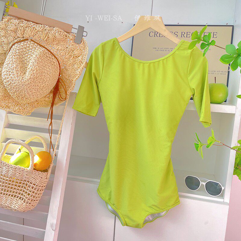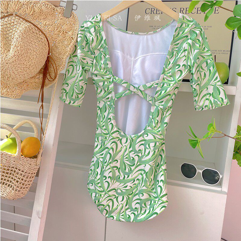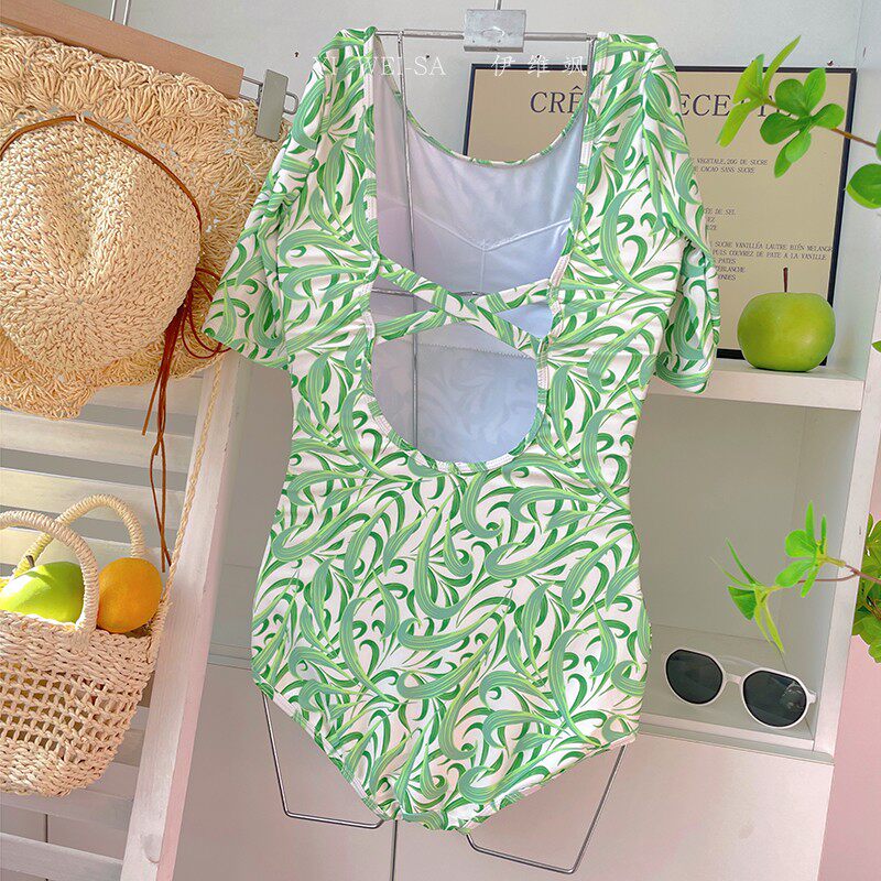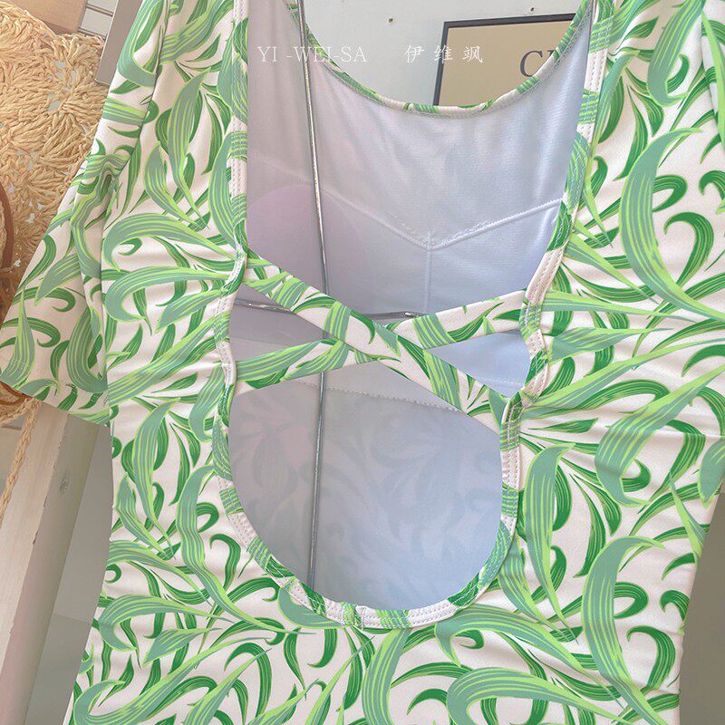 Измените код на 25.9, прозрачный принт авокадо, белый, консервативный, низкая вилка, горячий источник, свежий, цельный купальник треугольной формы с короткими рукавами.