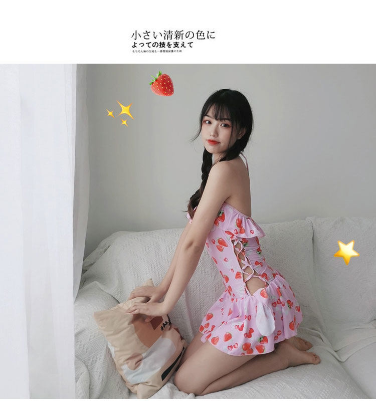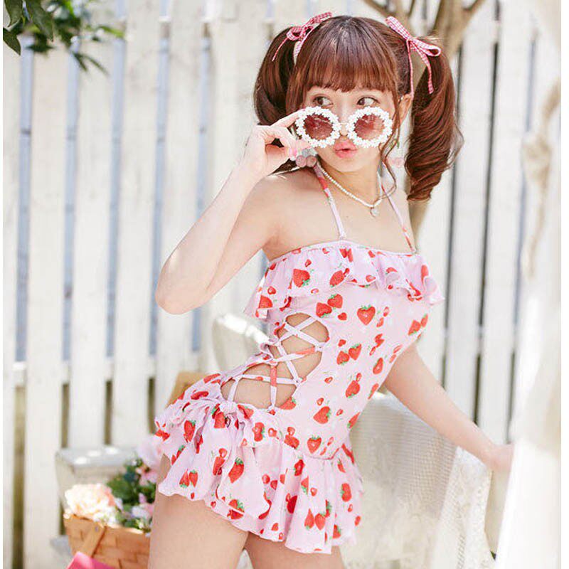 Японский ремень, боди, милый розовый купальник, клубника с бантиком для школьников и студентов