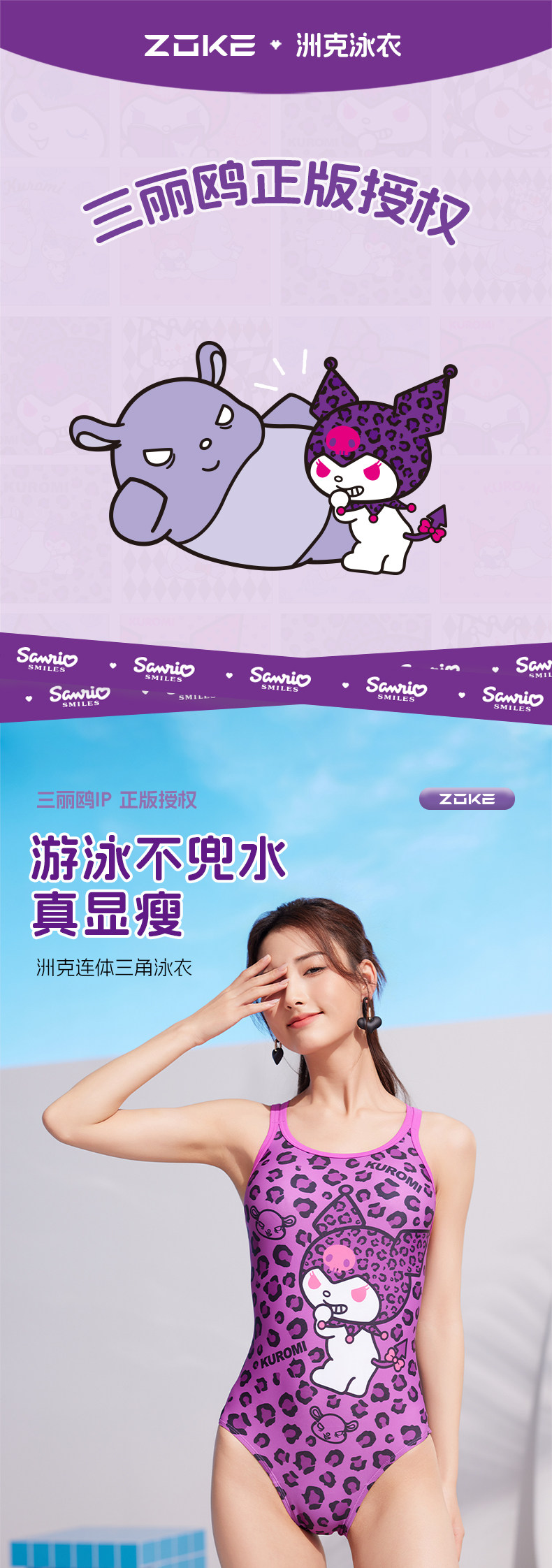 Купальник Girls 'Liangue Triangle плавание Coolmi Quick Racing Большое соревнование Sanrio Kuromi