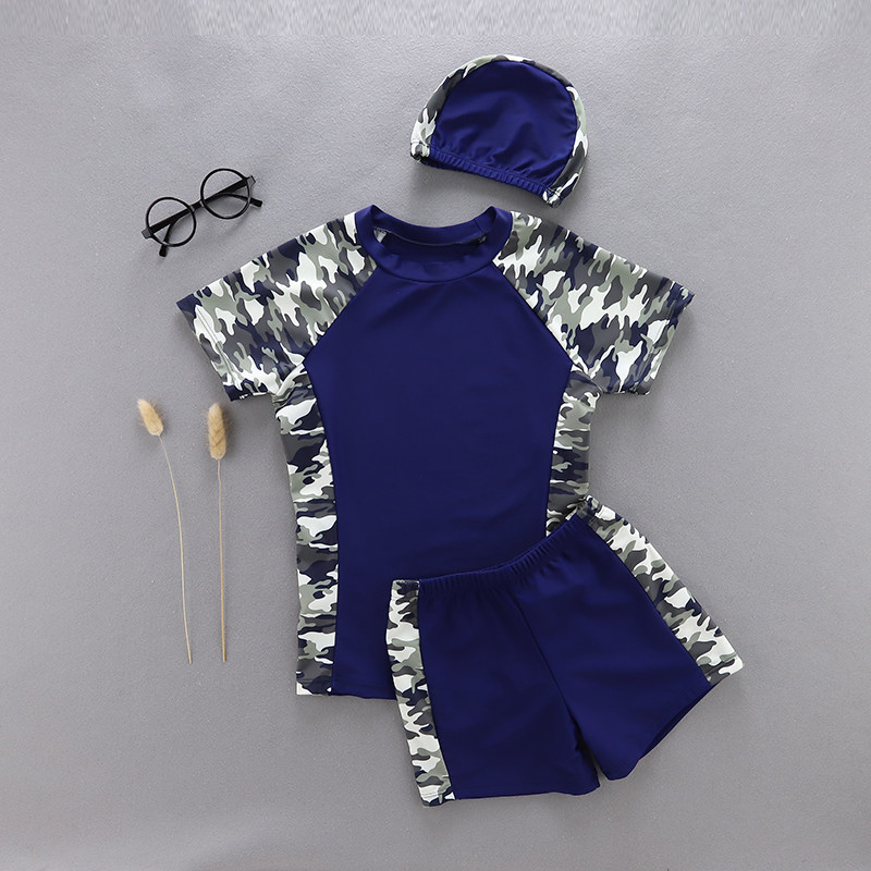 Детский раздельный купальник для мальчиков, шорты, короткий рукав, подходит для подростков, большой размер