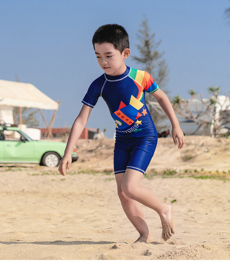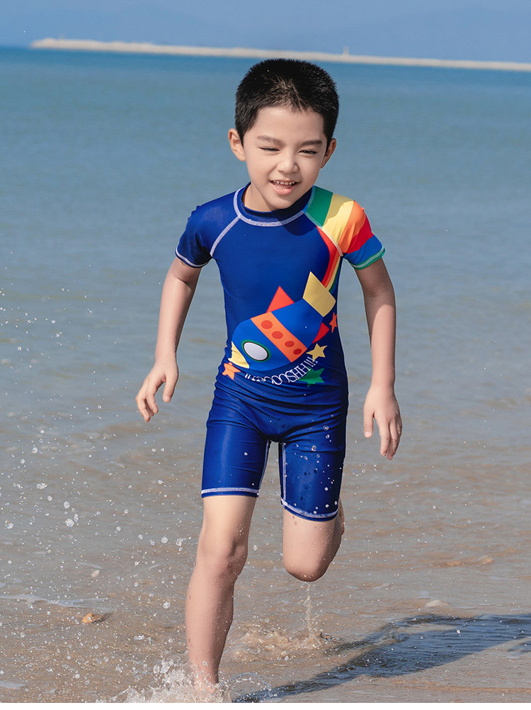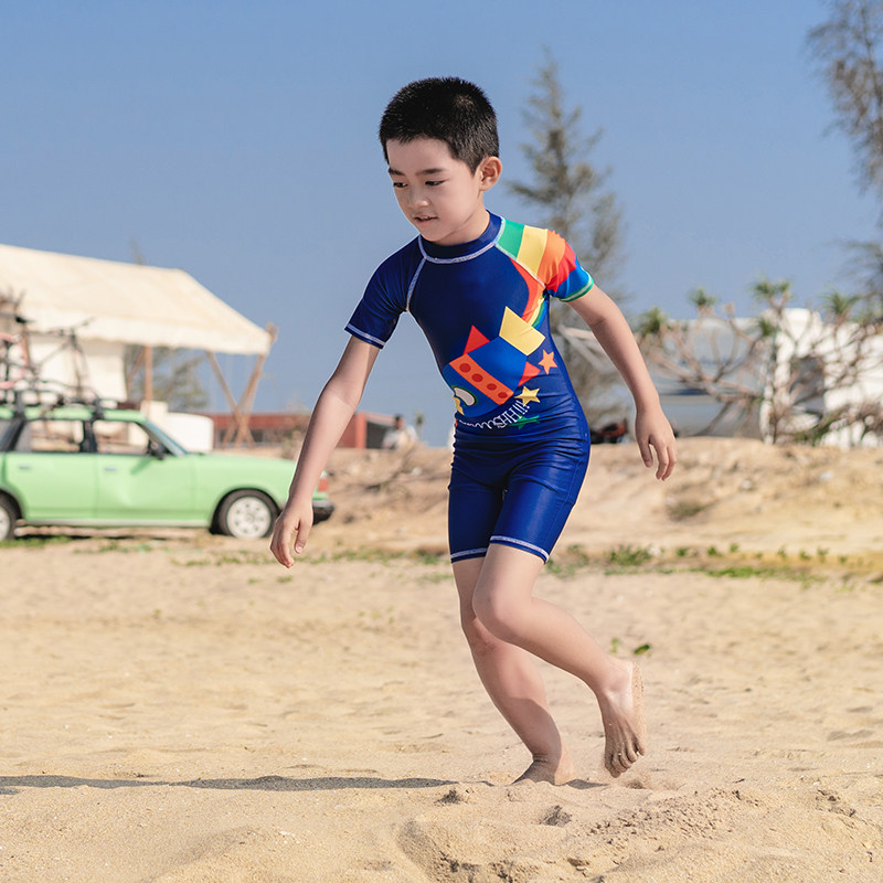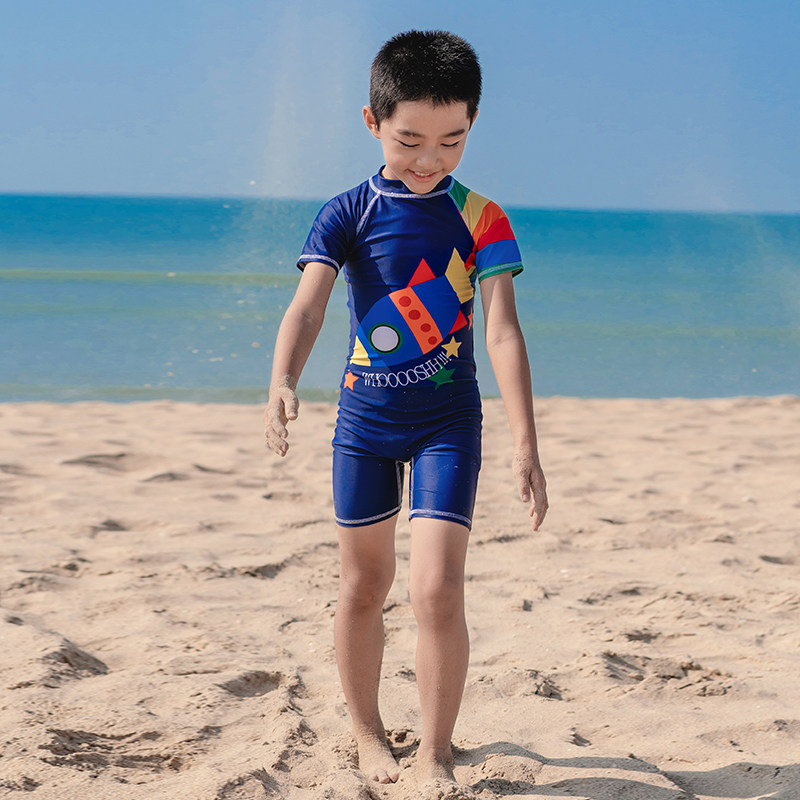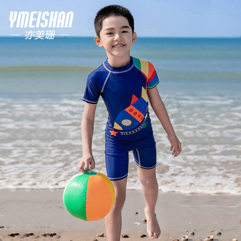 亦美珊 Детский купальник для мальчиков для раннего возраста, мультяшный быстросохнущий комплект для плавания, короткий рукав, защита от солнца