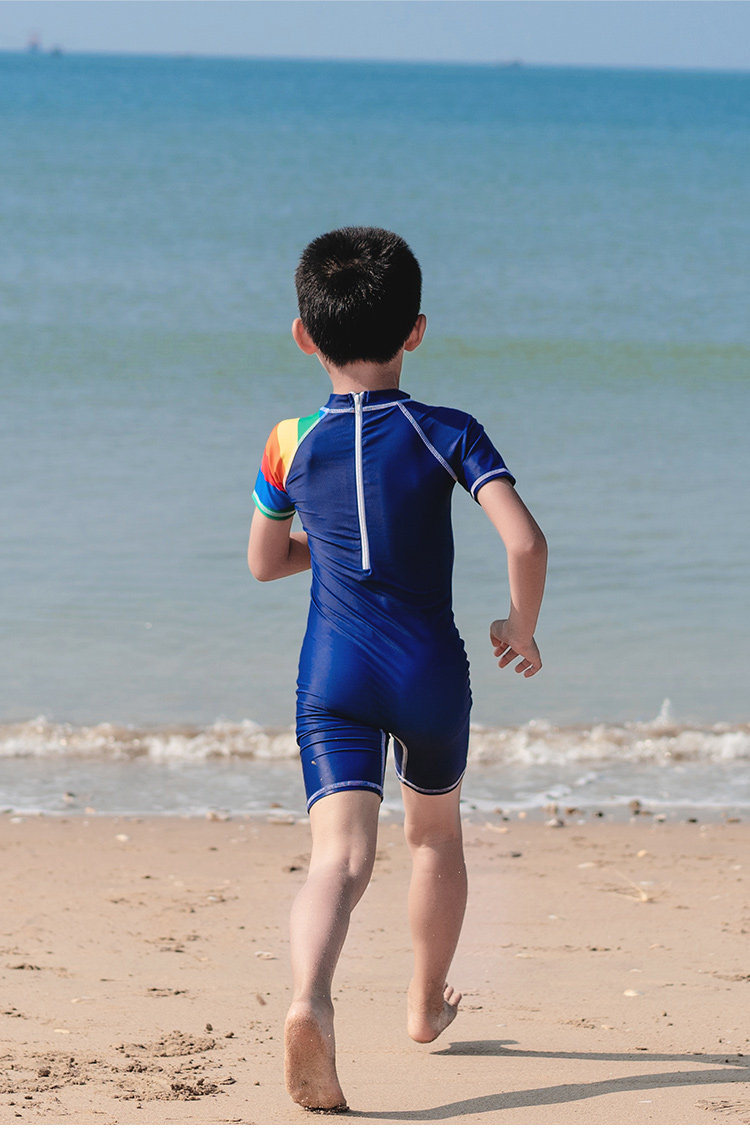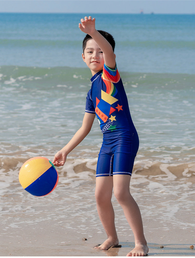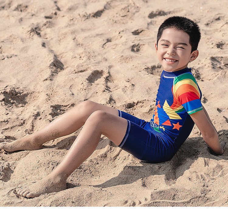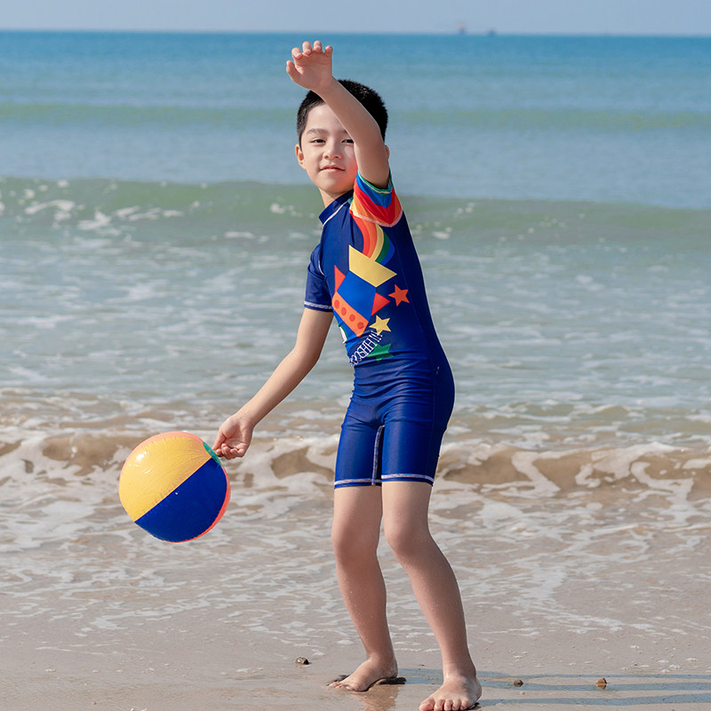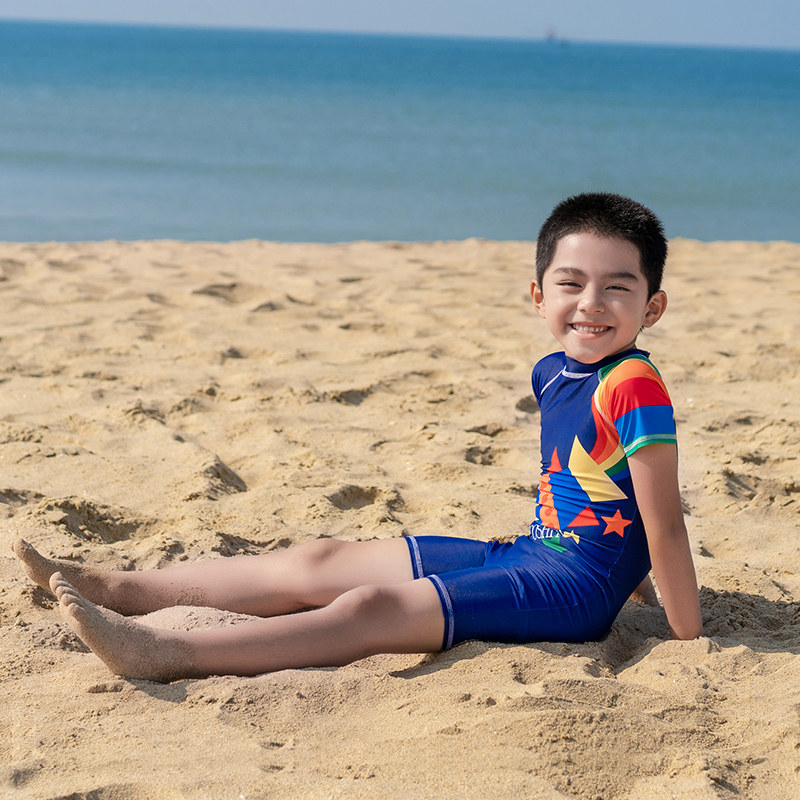 亦美珊 Детский купальник для мальчиков для раннего возраста, мультяшный быстросохнущий комплект для плавания, короткий рукав, защита от солнца