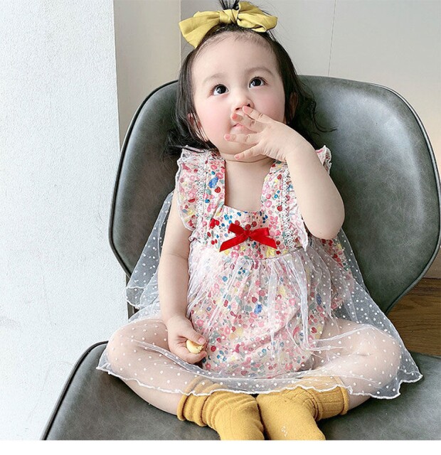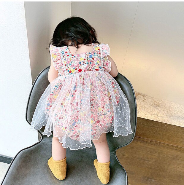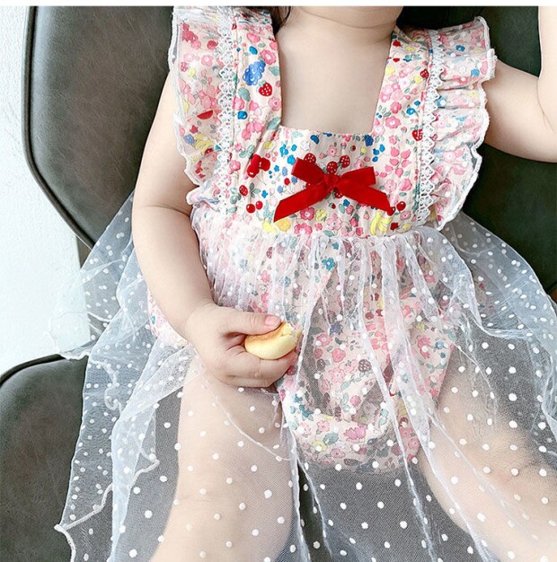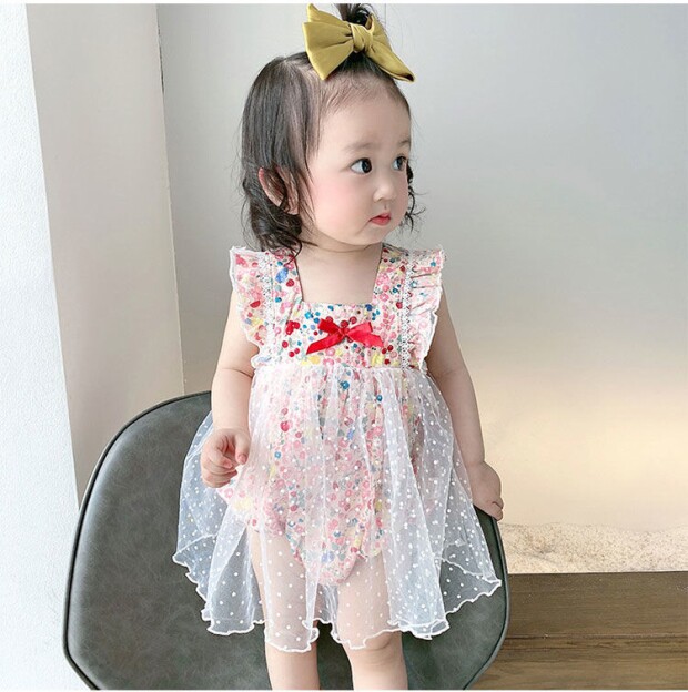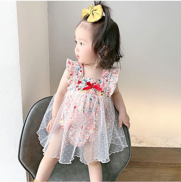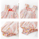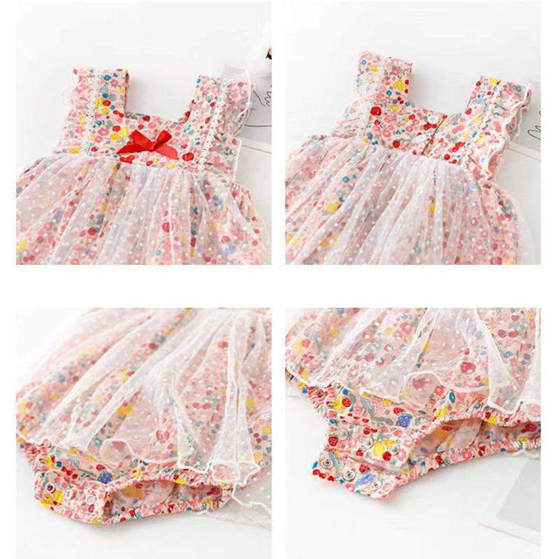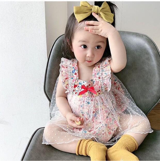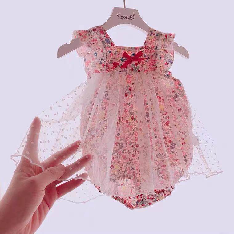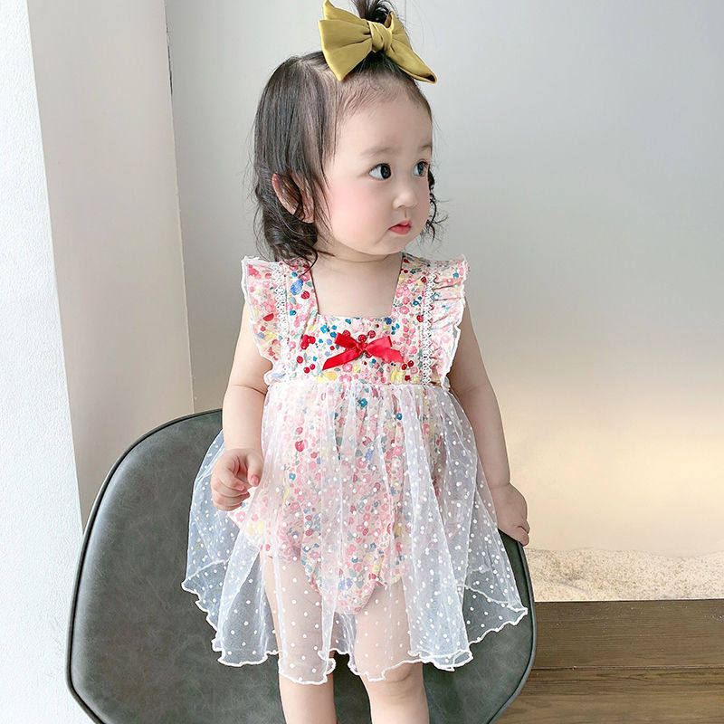 Детский комбинезон, летняя одежда для девочек, боди, милый тонкий комплект, цветочный принт, в западном стиле