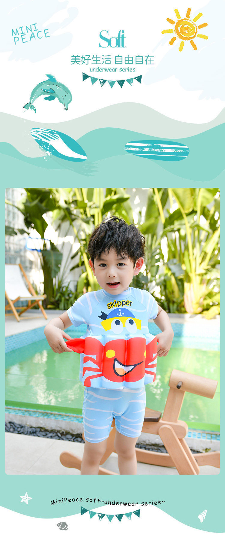 Детский милый мультяшный быстросохнущий купальник для мальчиков для плавания, защита от солнца