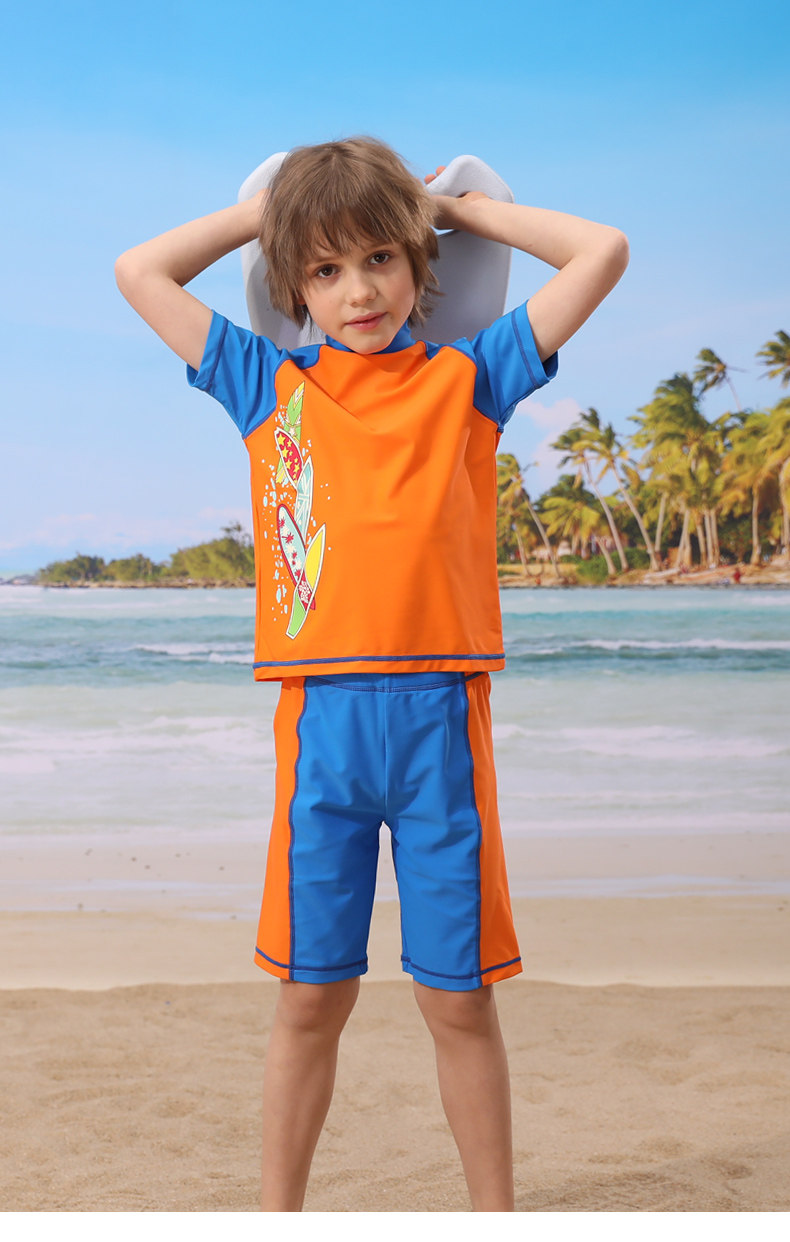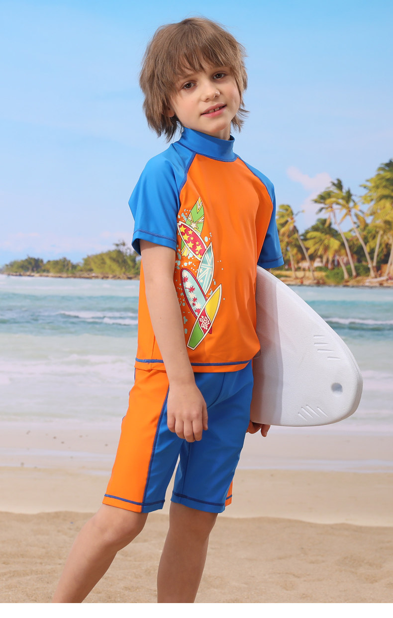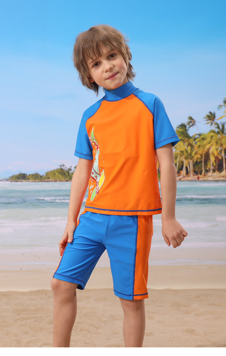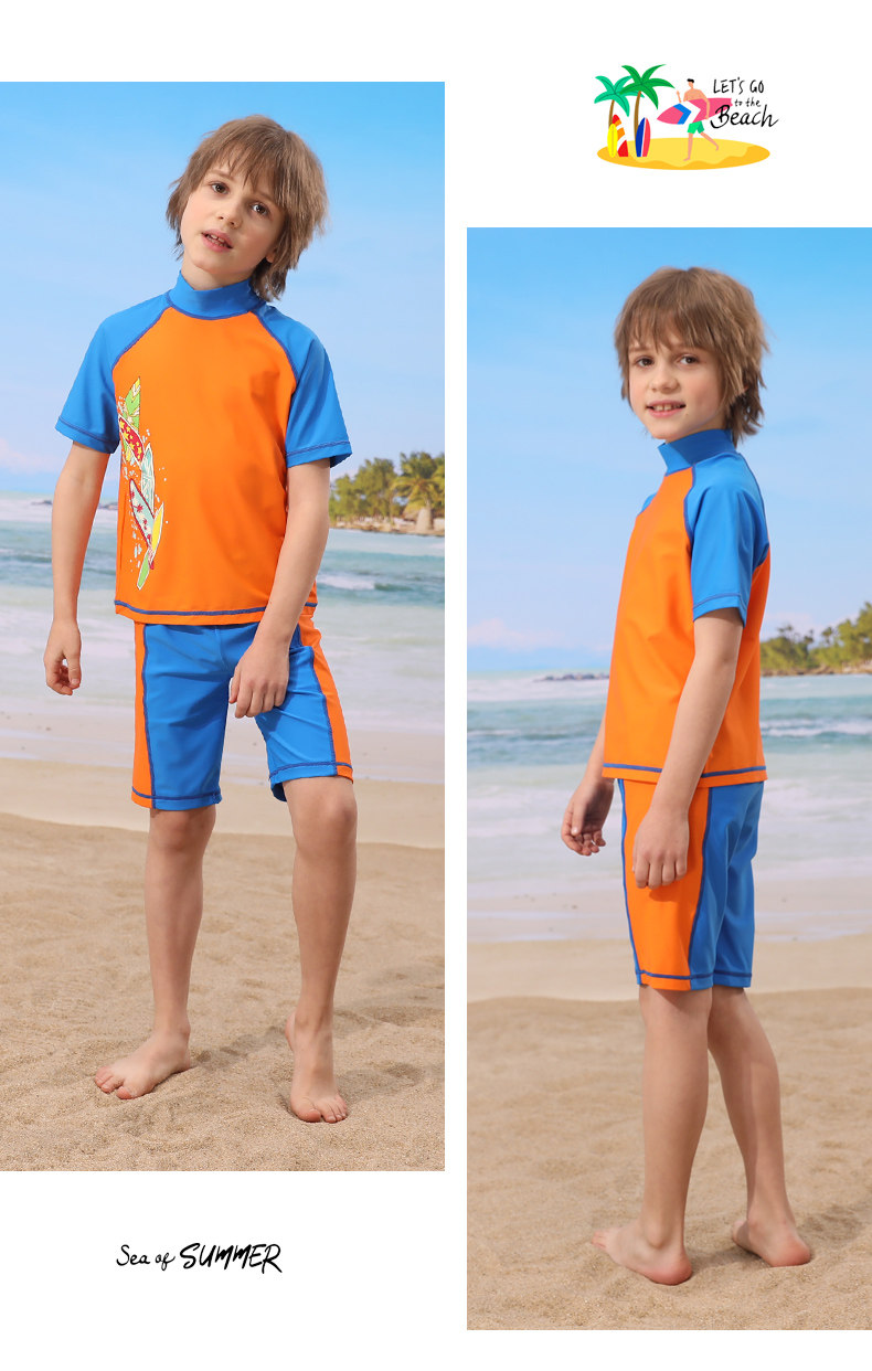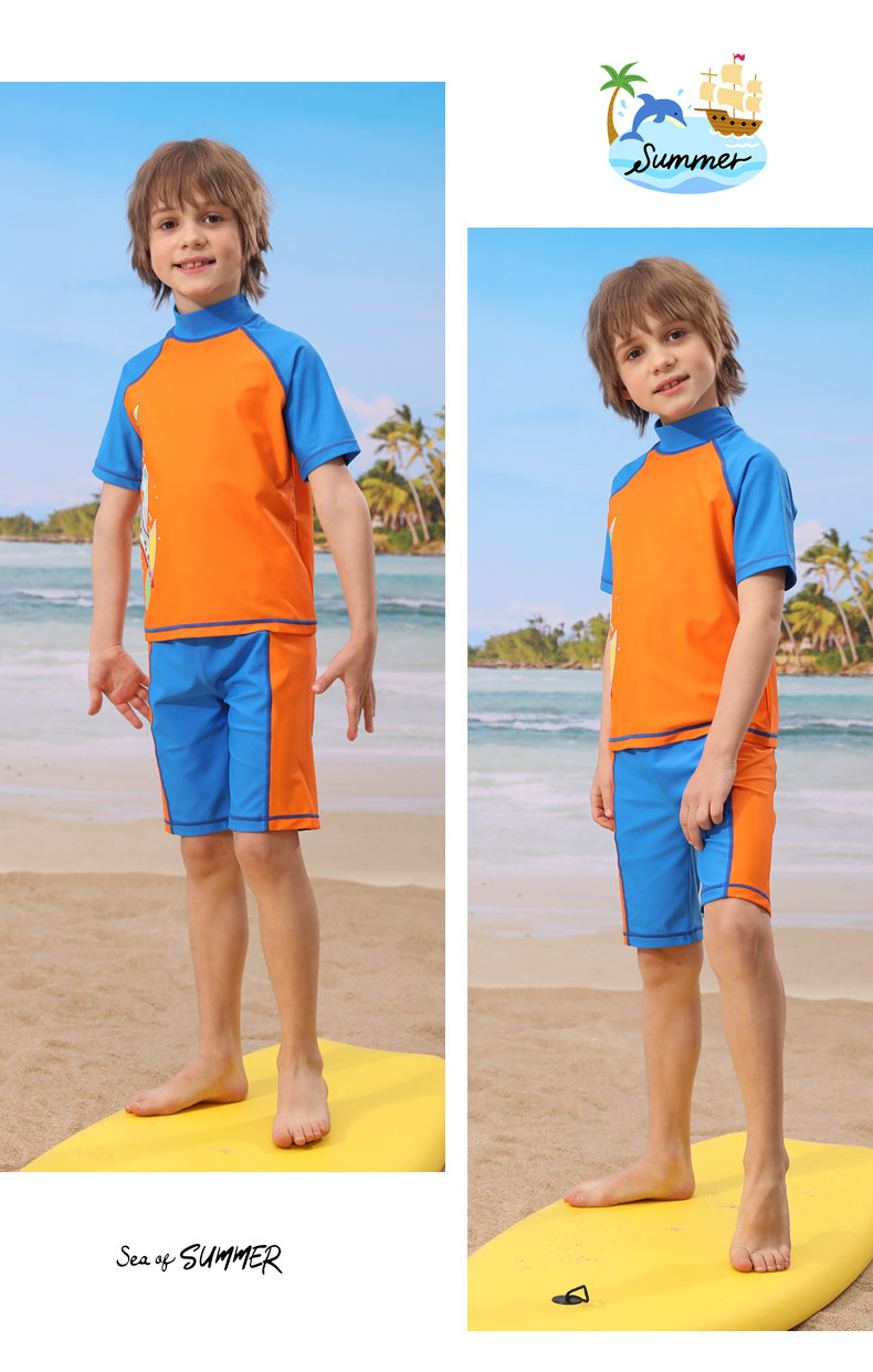Детский купальник для мальчиков, раздельные штаны, плавательный аксессуар, комплект, подходит для подростков, короткий рукав, защита от солнца