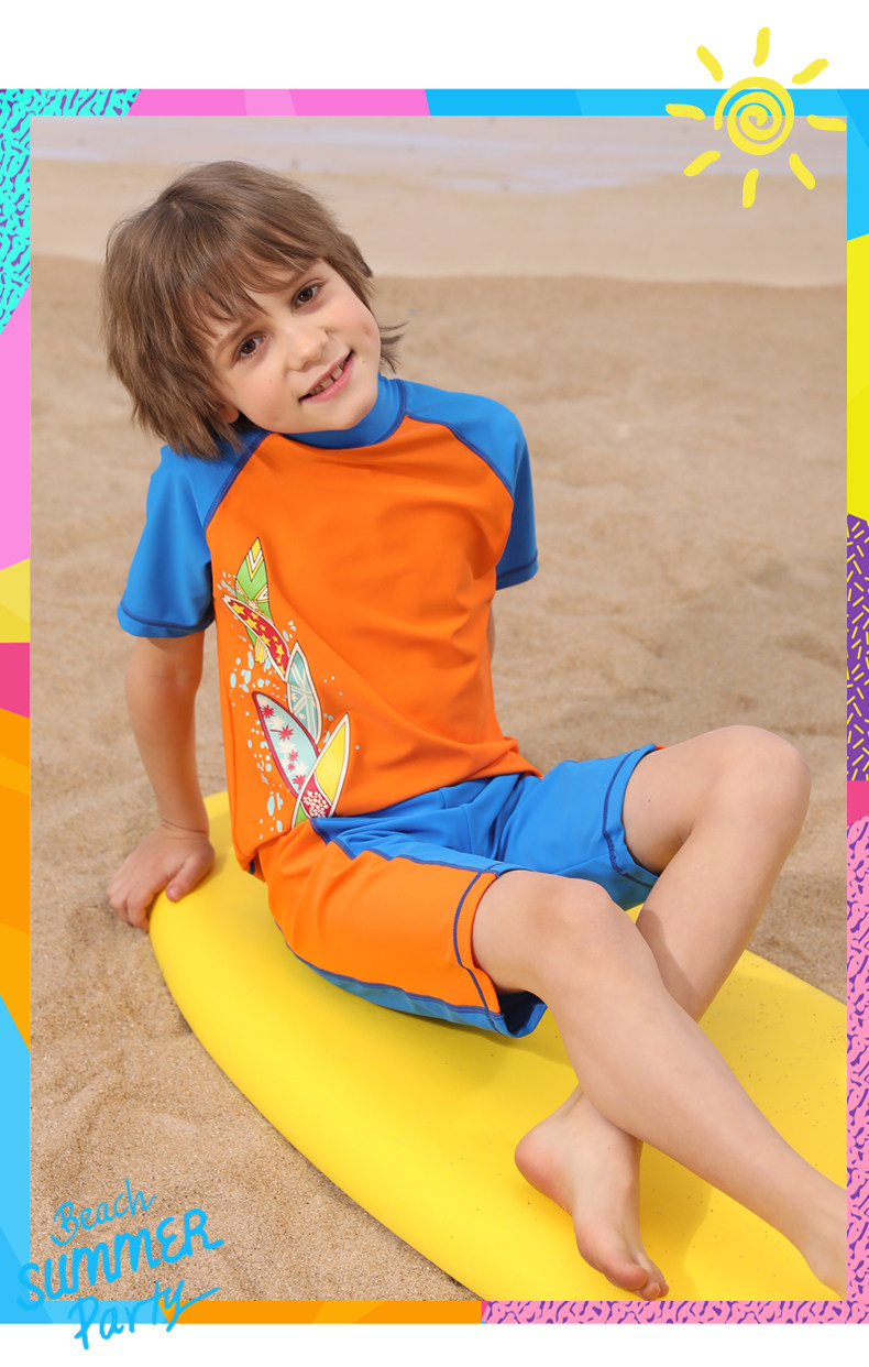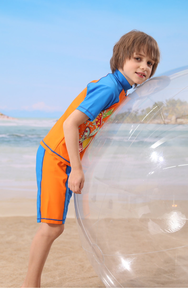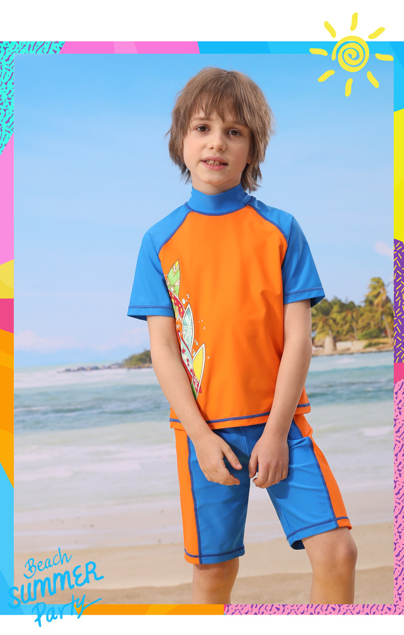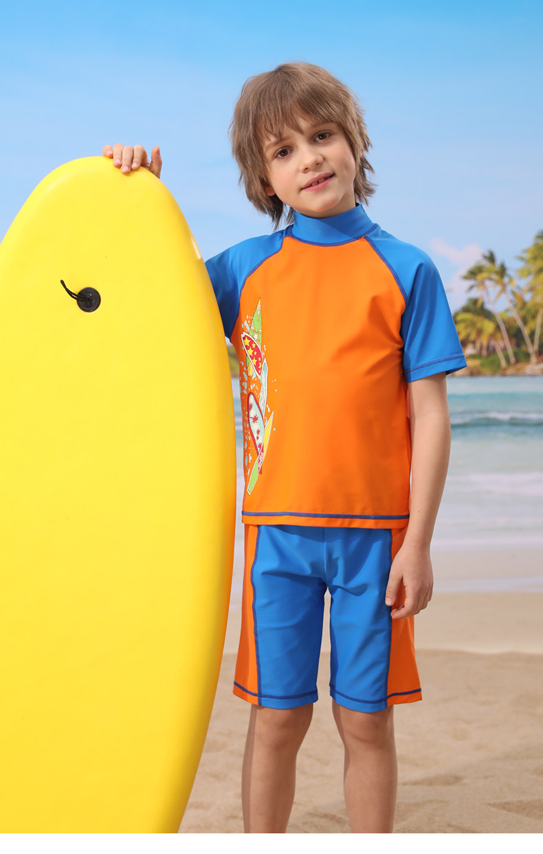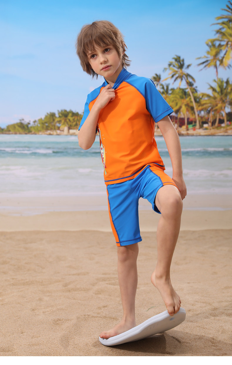 Детский купальник для мальчиков, раздельные штаны, плавательный аксессуар, комплект, подходит для подростков, короткий рукав, защита от солнца