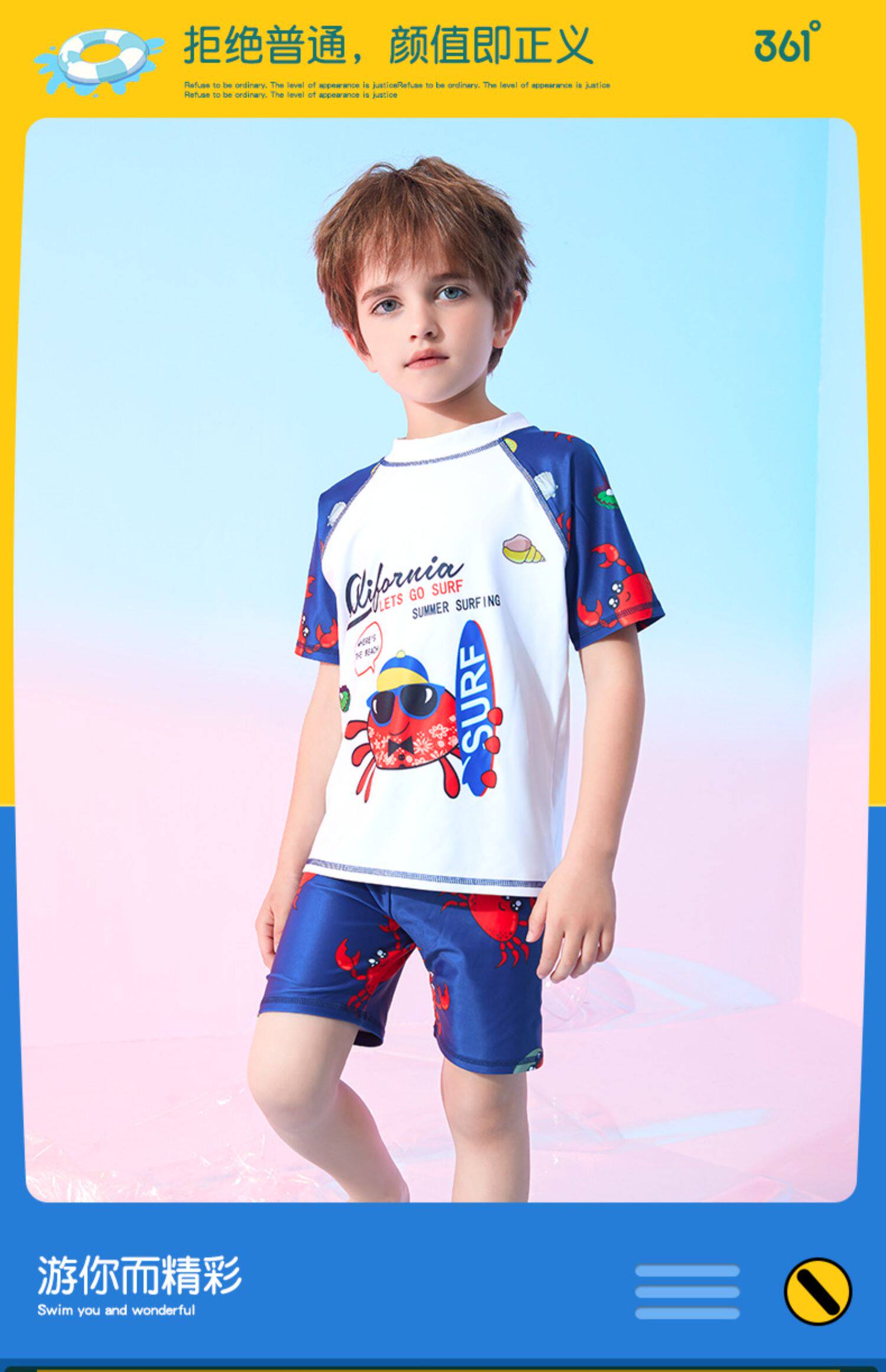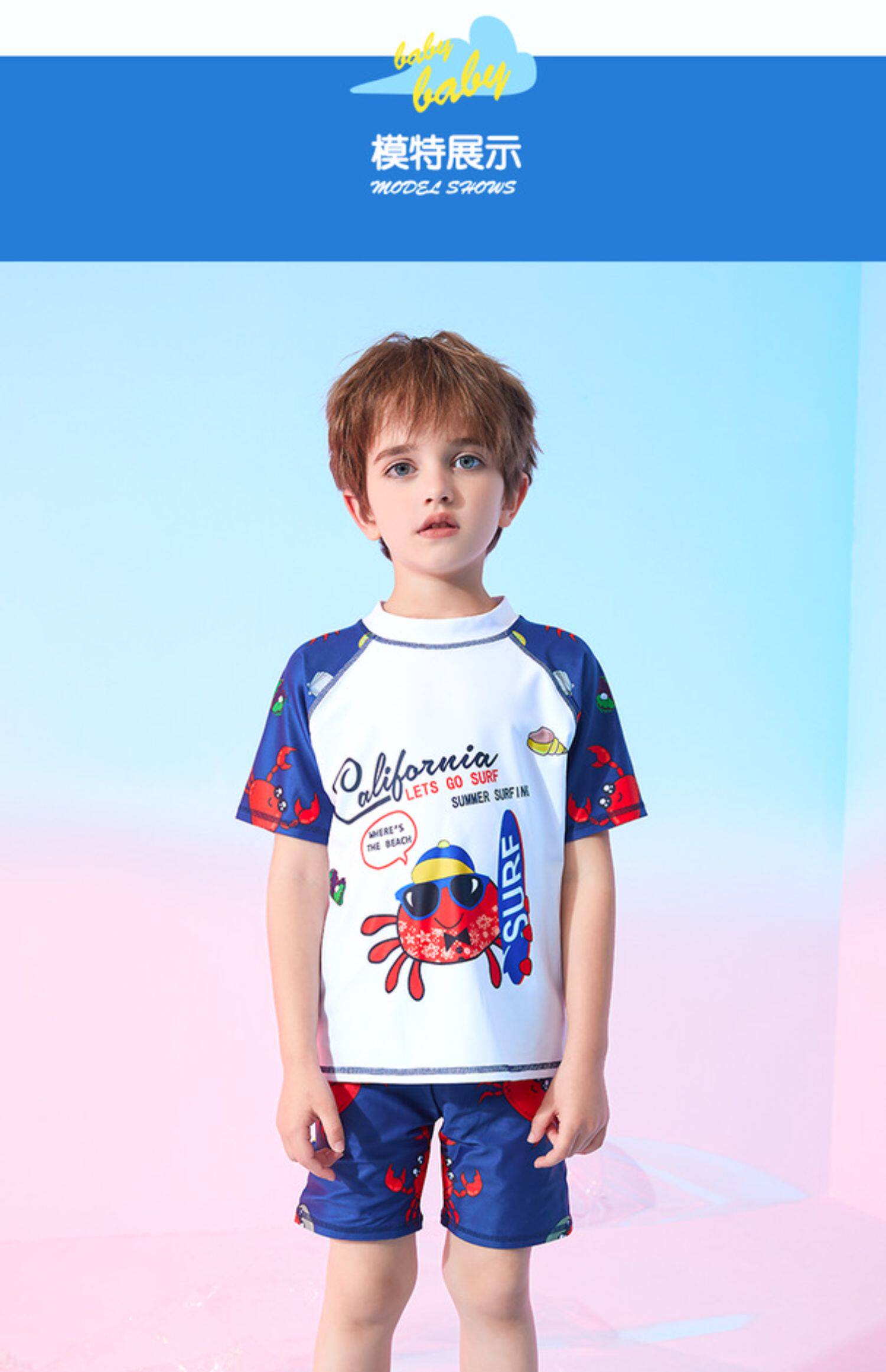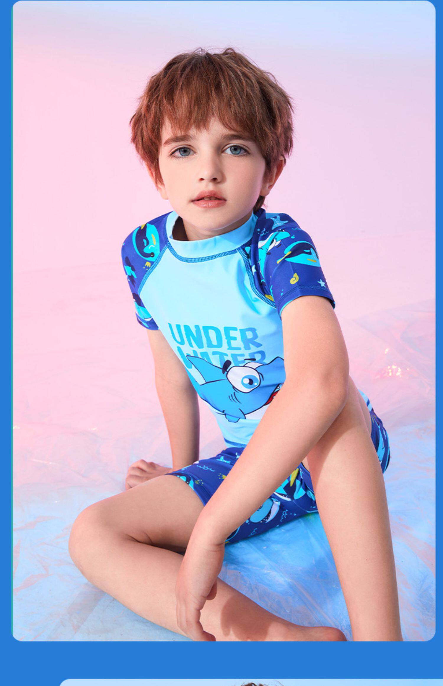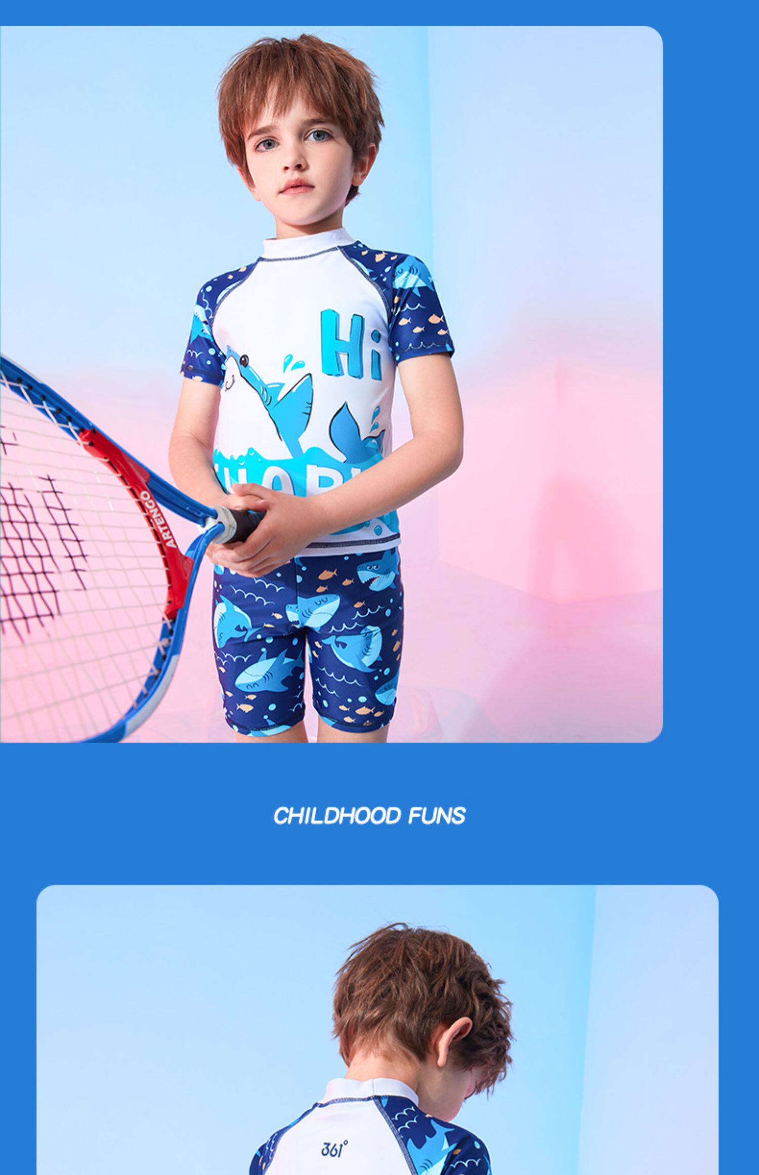 Детский купальник для мальчиков, подходит для подростков, короткий рукав