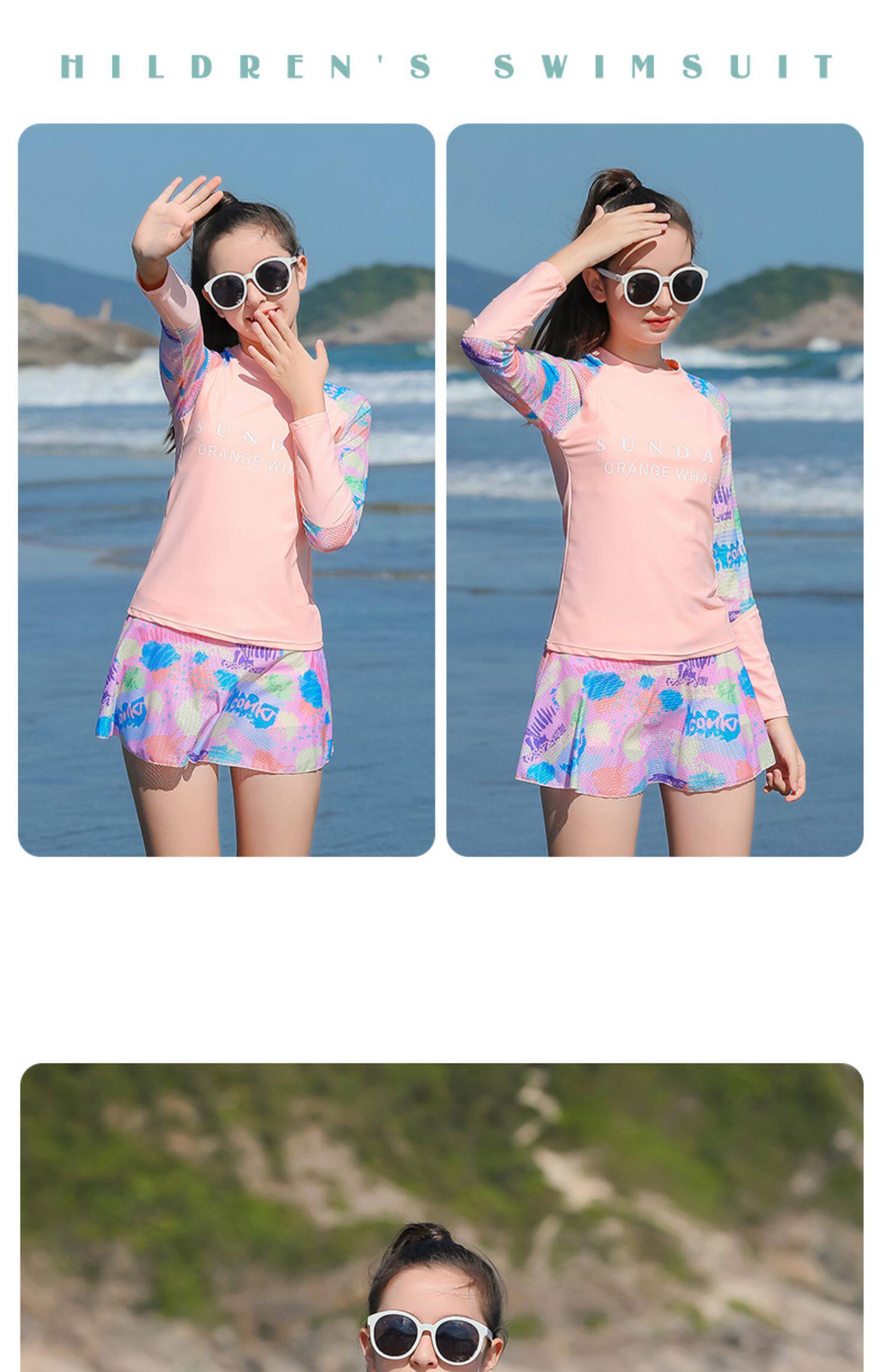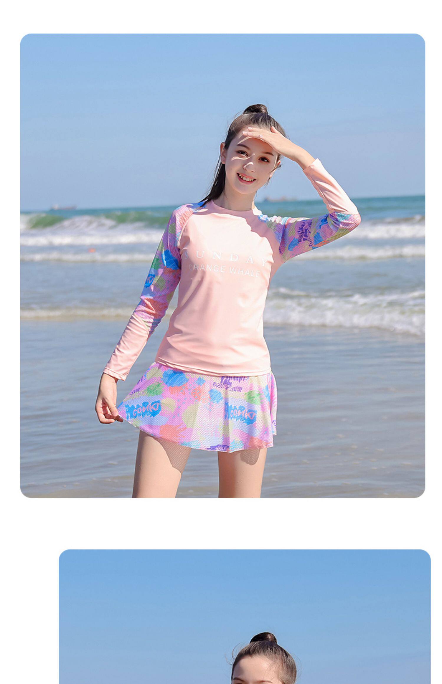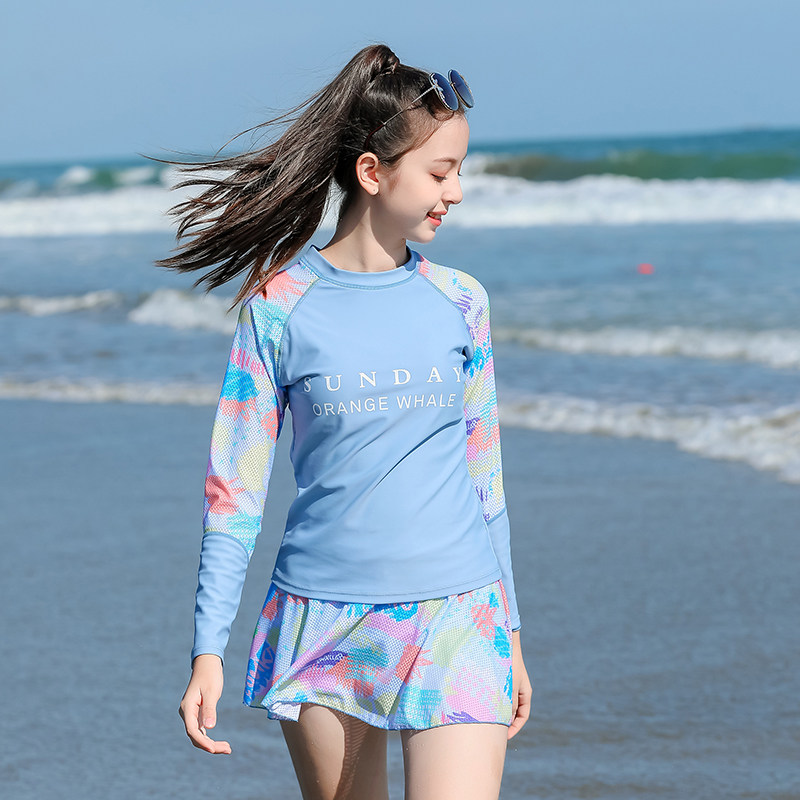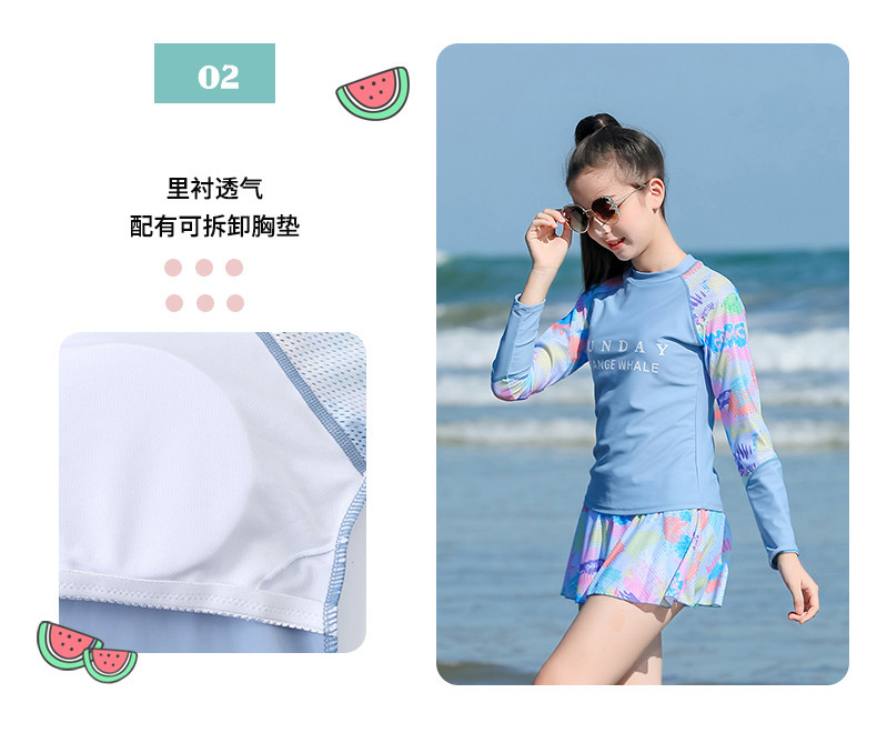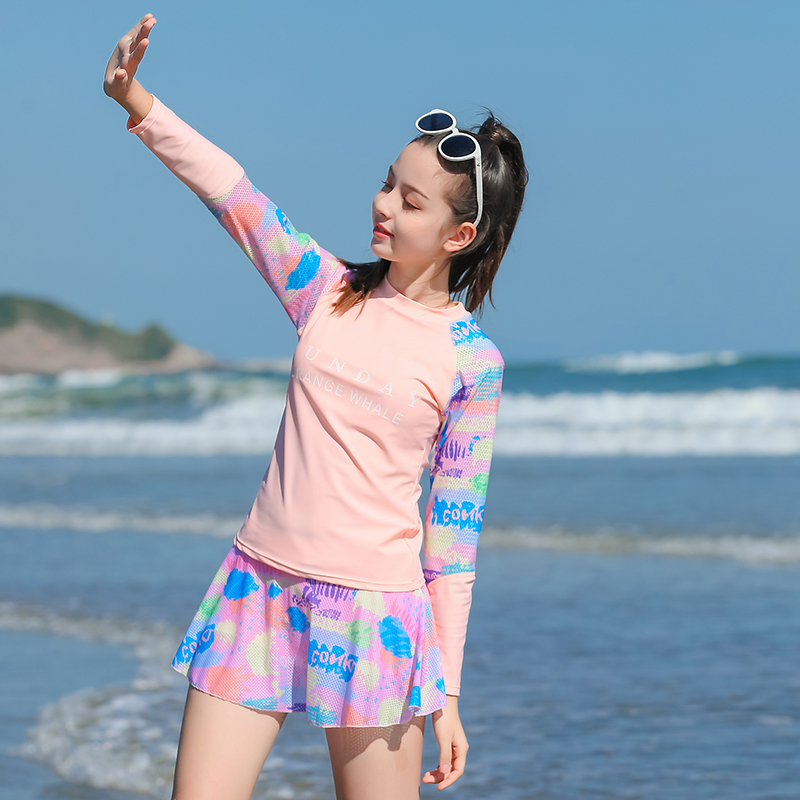 Раздельный купальник для школьников и студентов, лонгслив, съёмные вставки в бюстгальтер, подходит для подростков, для средней школы