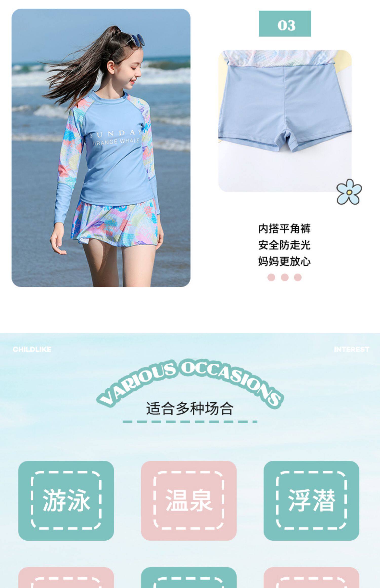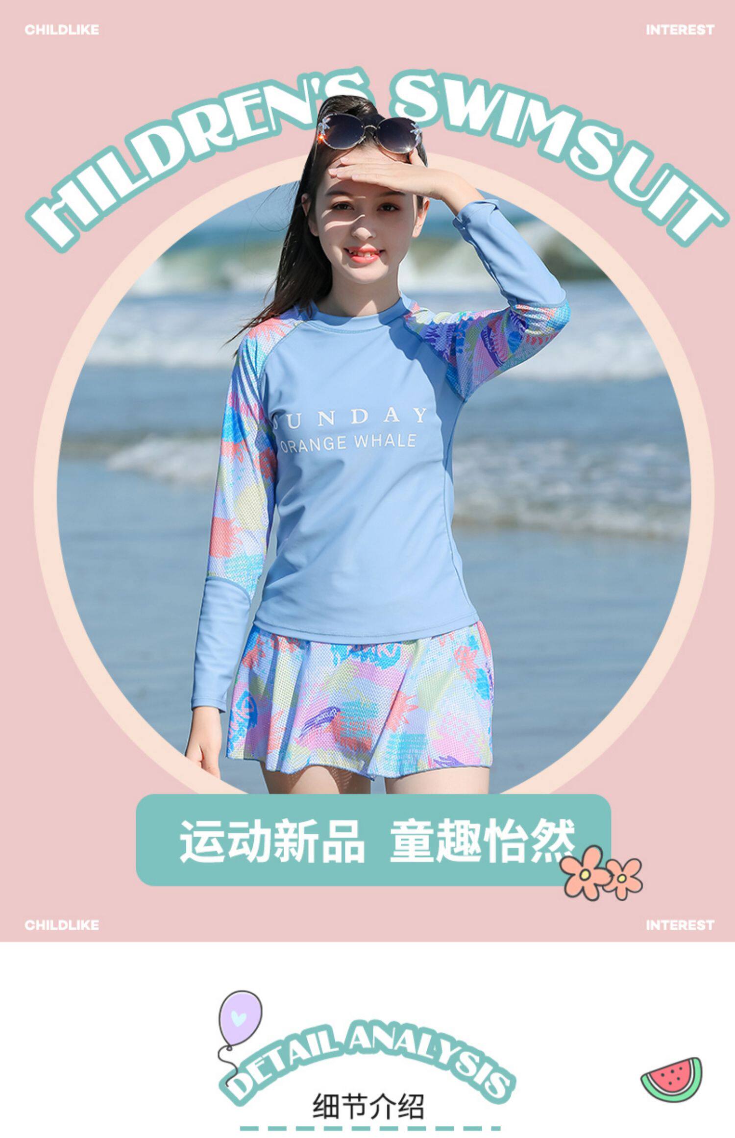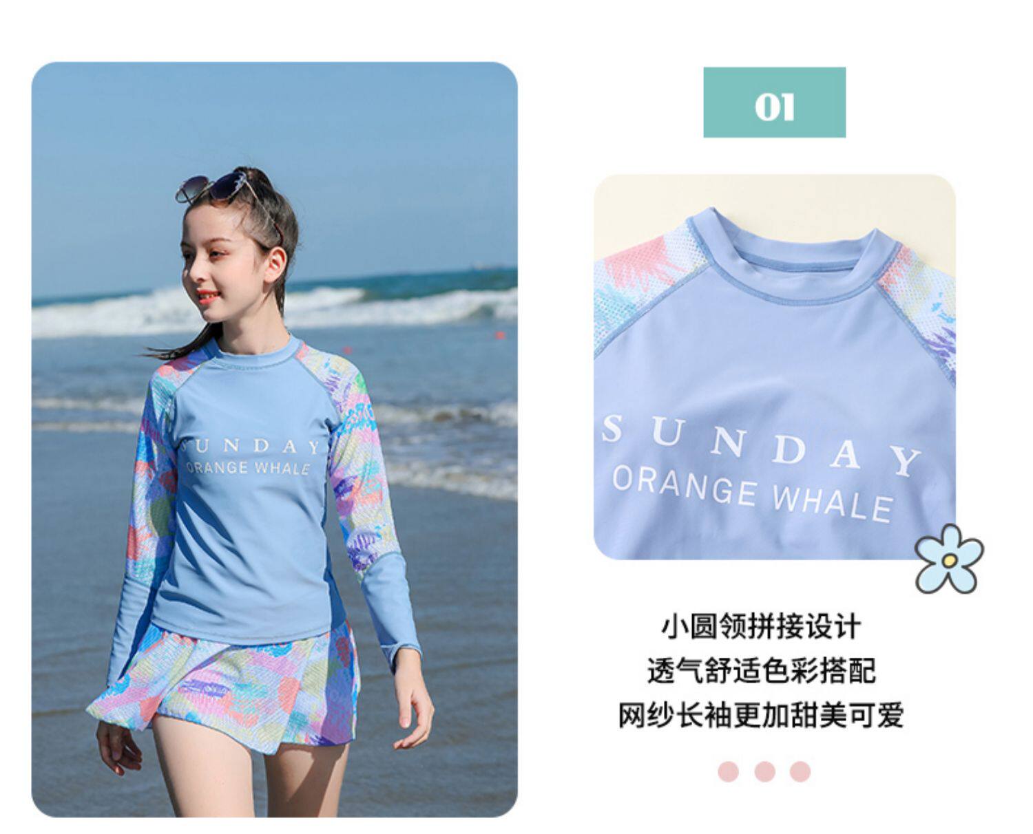 Раздельный купальник для школьников и студентов, лонгслив, съёмные вставки в бюстгальтер, подходит для подростков, для средней школы