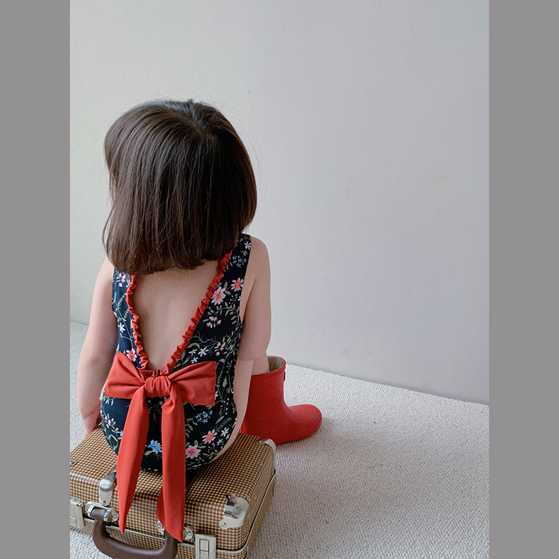 Гидролат, летний детский ретро купальник с бантиком, цветочный принт, с открытой спиной