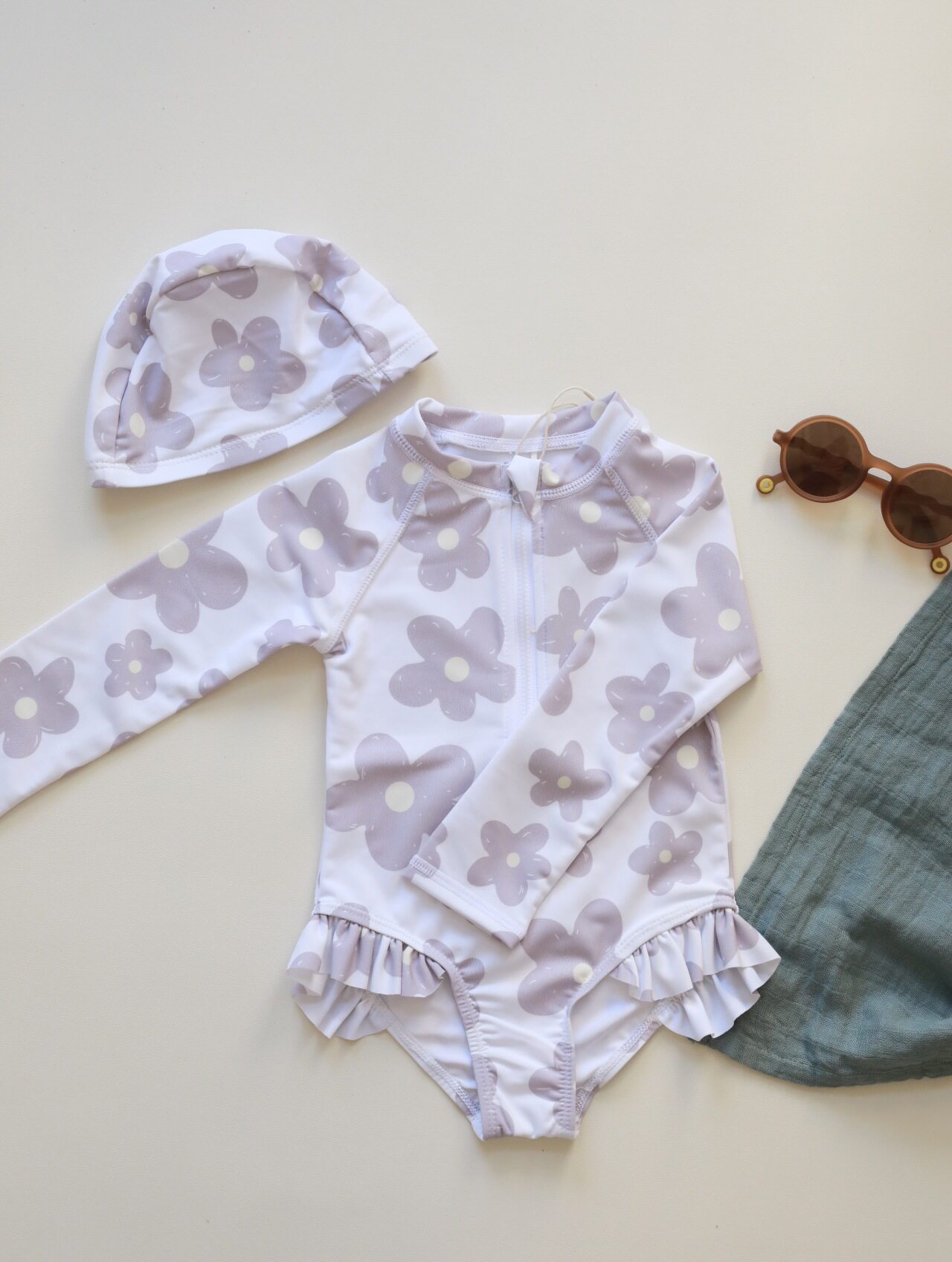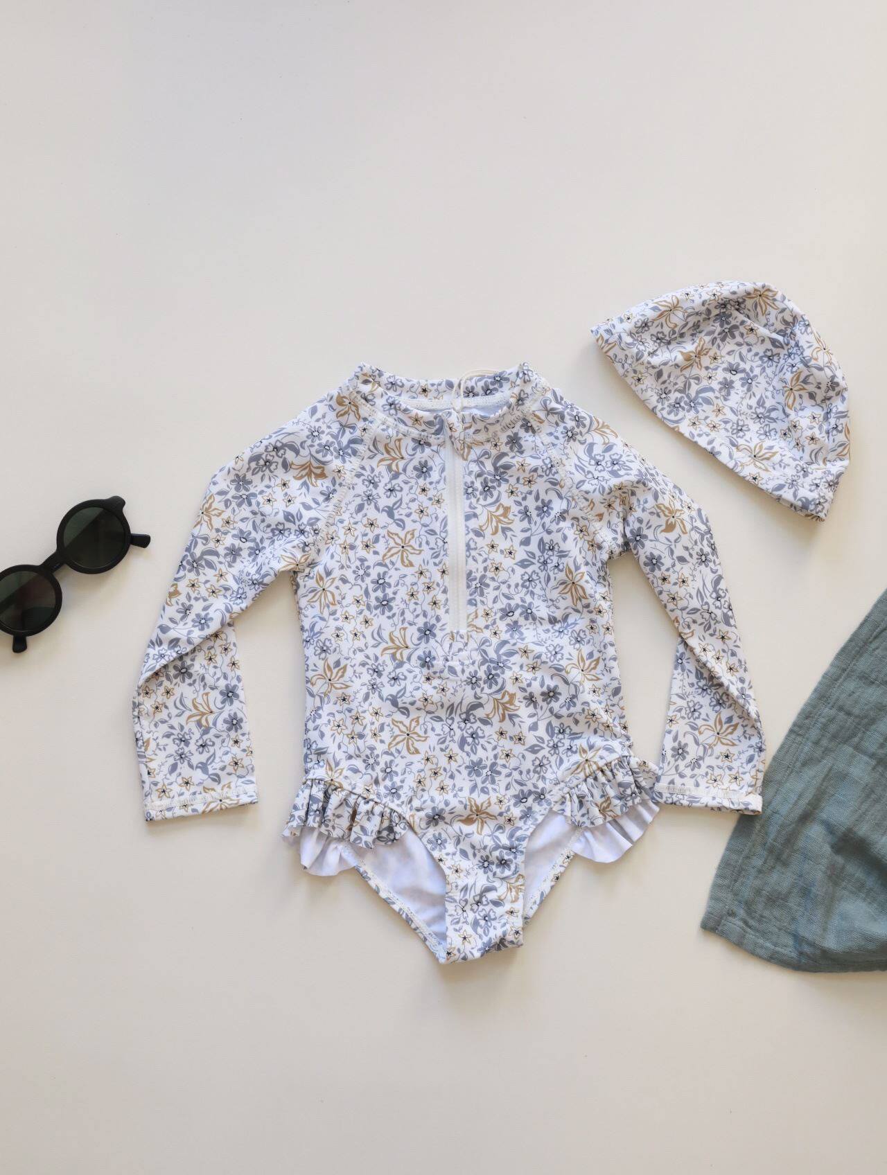 Брендовый детский быстросохнущий спортивный купальник, цветочный принт, защита от солнца