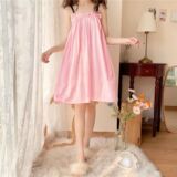 Пижама, хлопковая юбка, милое длинное платье без рукавов, эффект подтяжки, в корейском стиле, длина макси
