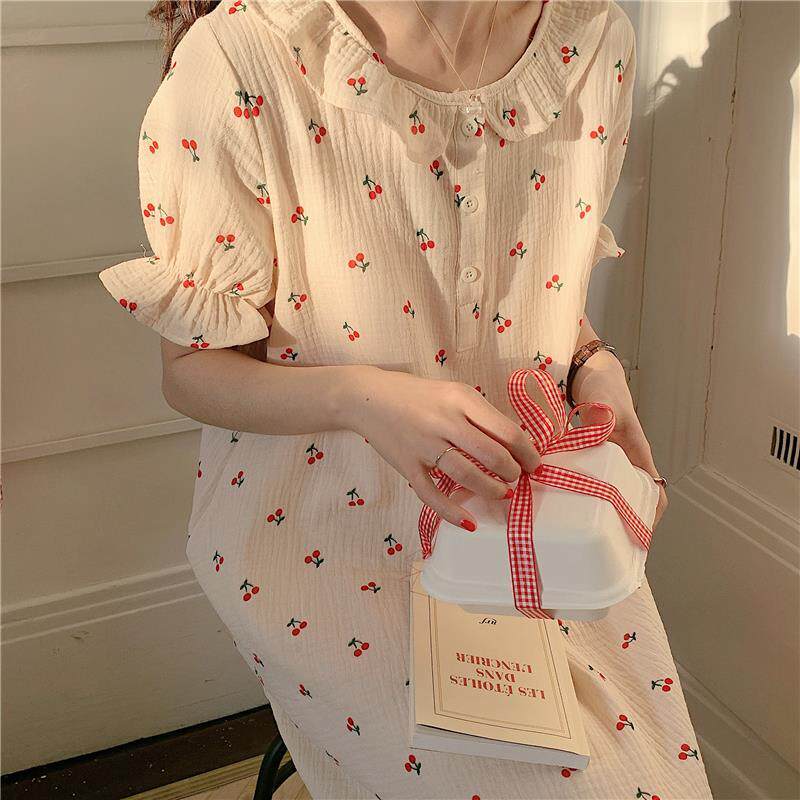 Хлопковая пижама, милое длинное платье для школьников и студентов, длина миди, средней длины