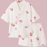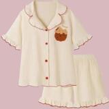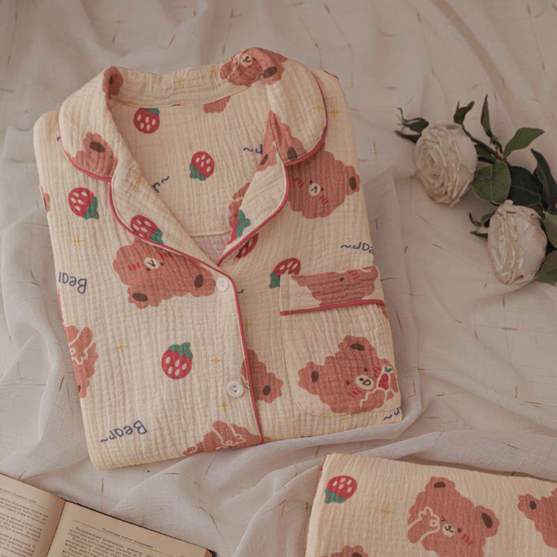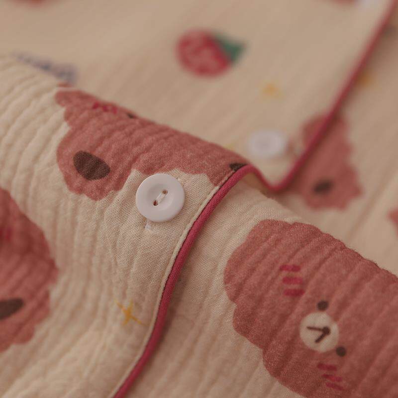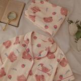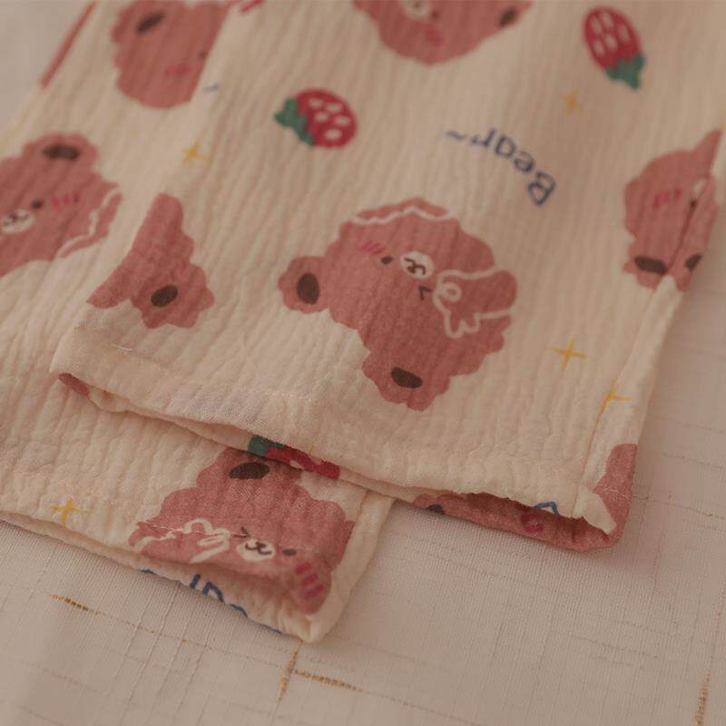 Японская мультяшная клубника, хлопковая марлевая летняя пижама, комплект, с медвежатами, коллекция 2023, короткий рукав