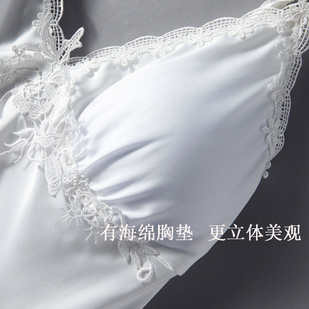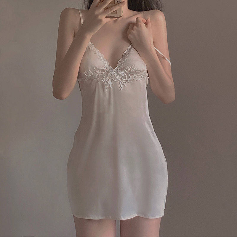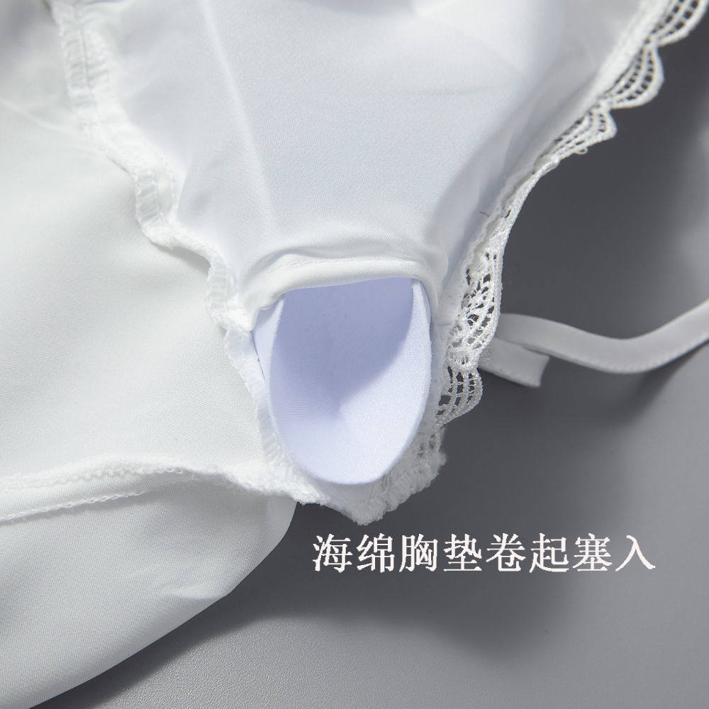 Сексуальная шелковая пижама, мини-юбка, топ с чашечками для школьников и студентов, с вышивкой, эффект подтяжки, в корейском стиле