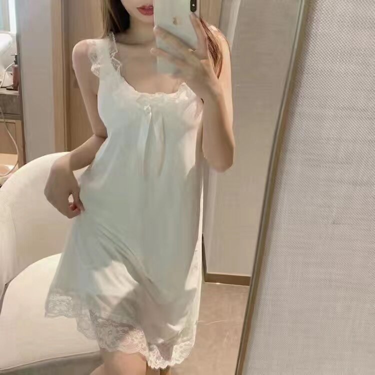 Летняя хлопковая тонкая пижама, милая длинная юбка, эффект подтяжки, оверсайз, средней длины