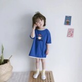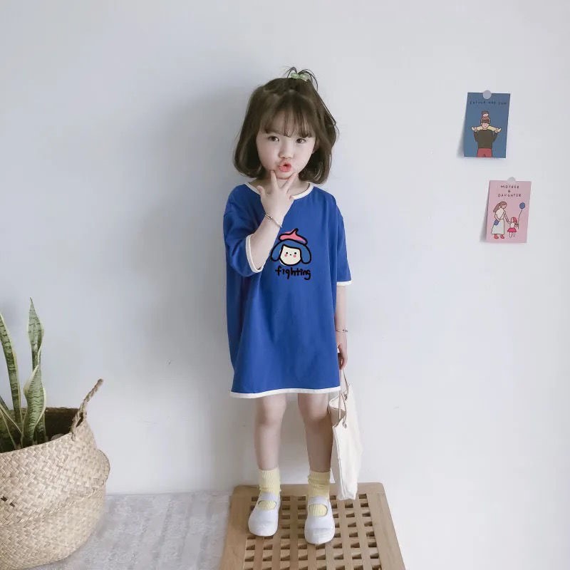 Летняя детская летняя одежда, хлопковое свободное платье, мини-юбка, футболка с коротким рукавом, платье-футболка, в корейском стиле
