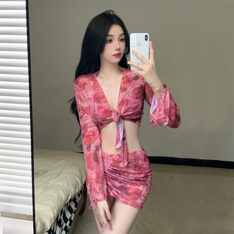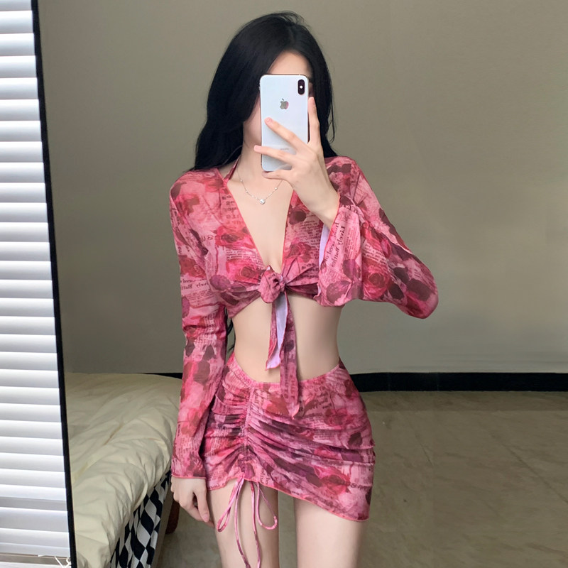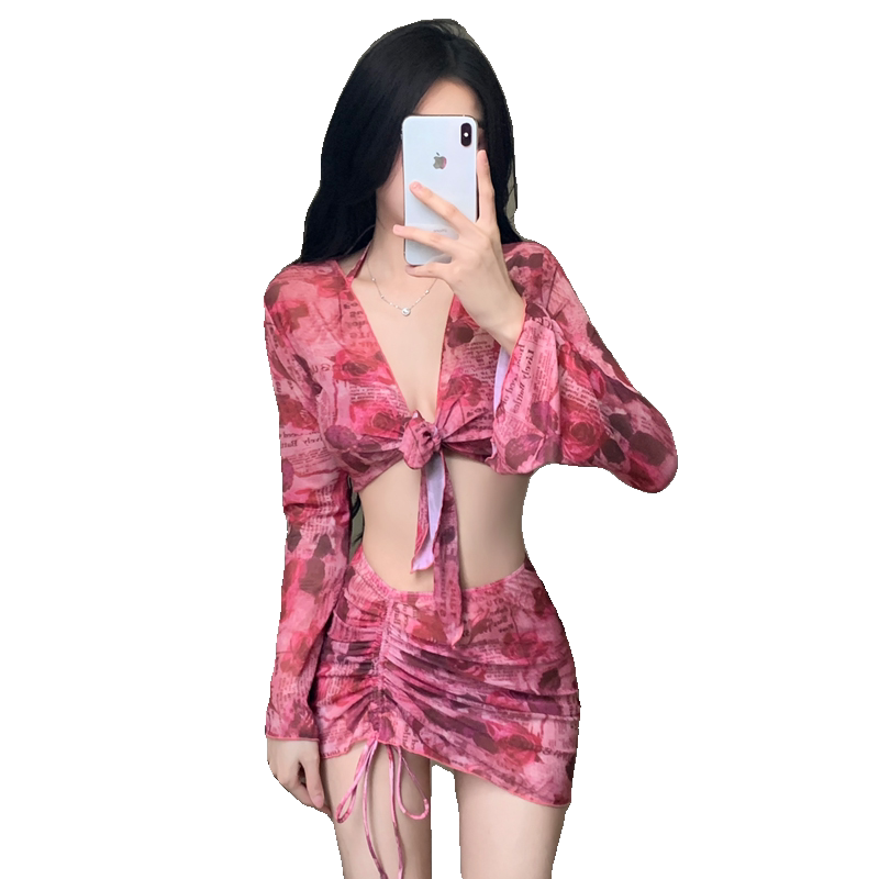 Купальник, раздельный комплект, сексуальный приталенный лонгслив, 4 предмета, защита от солнца